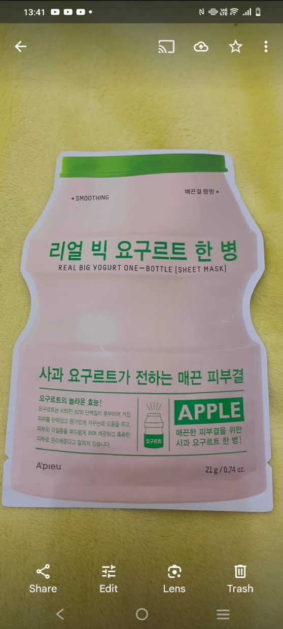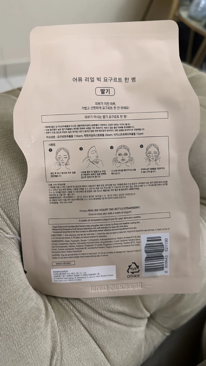 This sheet mask is a treat! My skin feels so soft, and the yogurt extract gave it a healthy glow.