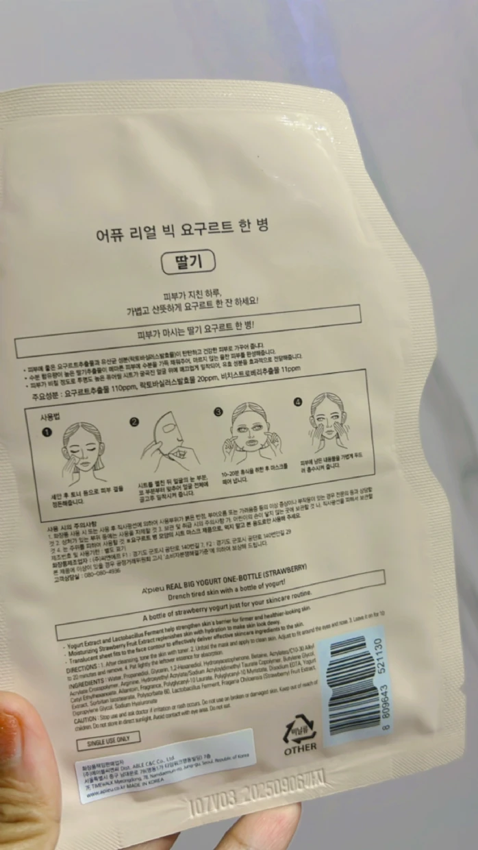 This mask feels like a refreshing bottle of strawberry yogurt for my skin! Infused with yogurt extract and lactobacillus ferment, it helps strengthen the skin’s barrier, making it look firmer and healthier. The strawberry fruit extract adds a boost of hydration, leaving my skin dewy and fresh. The translucent sheet fits perfectly, ensuring all the goodness is absorbed. After using it, my skin feels soft, plump, and super nourished. If you love hydrating and soothing sheet masks, this one is a must-try!