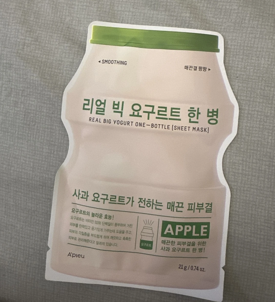 I have sensitive skin, and I was a bit hesitant to try a new mask, but the The APIEU Apple Smoothing Mask left my skin feeling soft and moisturized. The apple scent was light and refreshing, and the mask fit comfortably on my face. After removing it, my skin felt smooth and hydrated. I’ll definitely use this mask again!