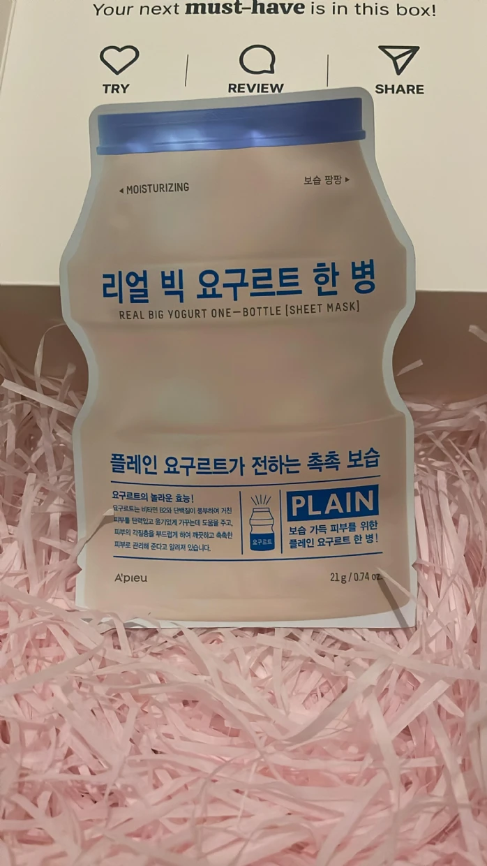 A’pieu Real Big Yogurt One-Bottle Sheet Mask (Plain) – So hydrating and refreshing! Leaves the skin feeling soft, smooth, and glowing. Love how gentle it is!