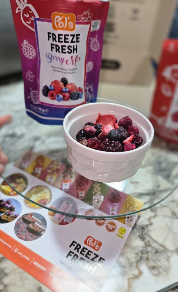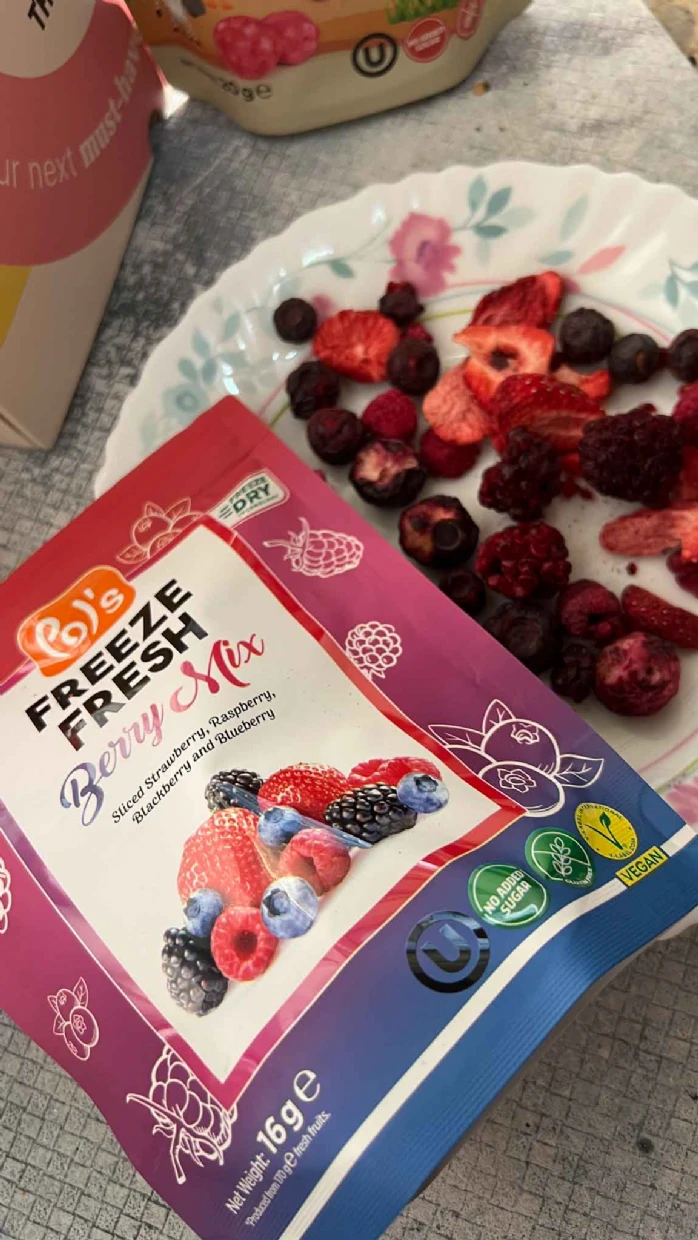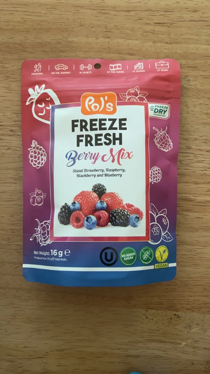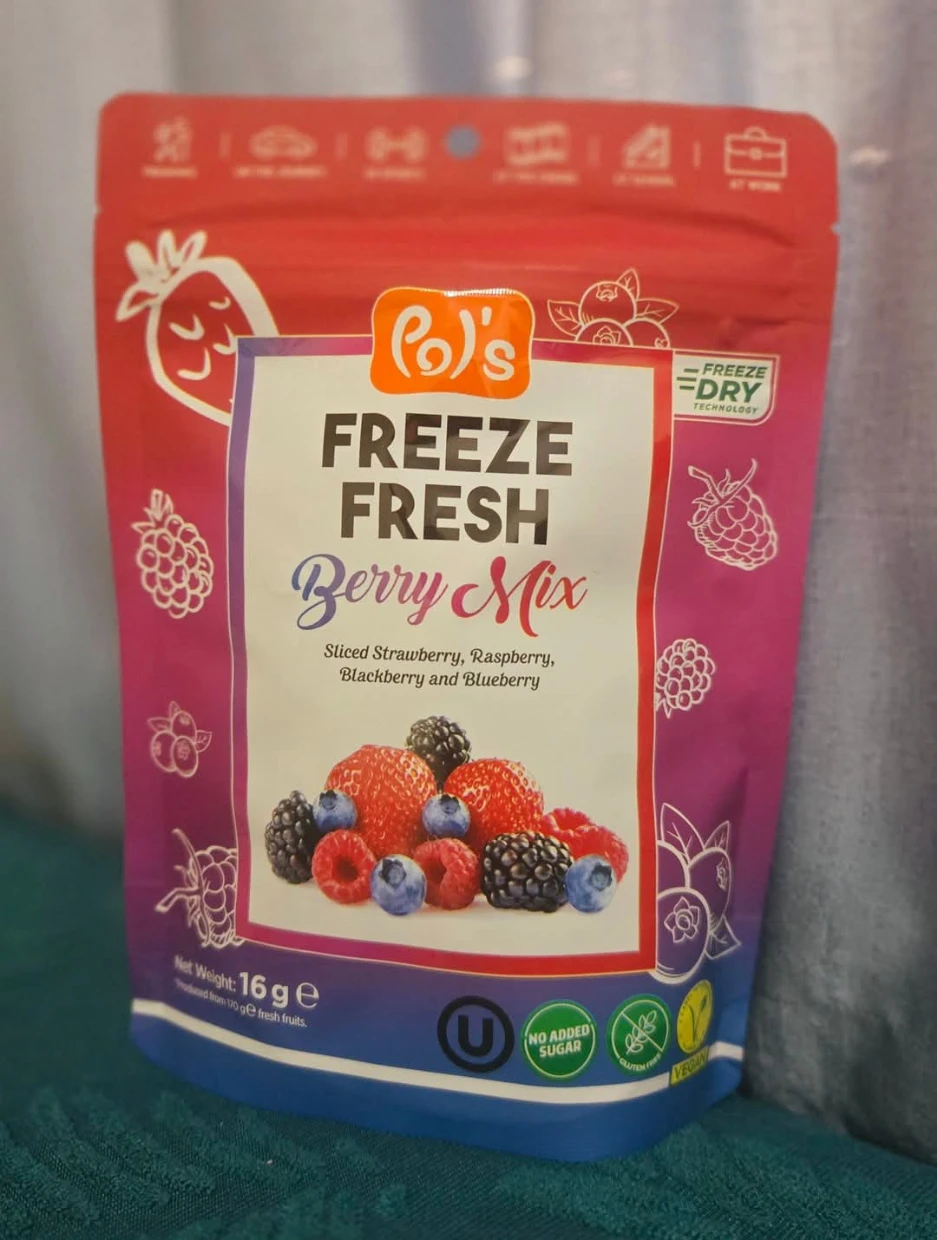 Pol’s Freeze Fresh Freeze-Dried Berry Mix is a delicious, no-added-sugar, vegan, gluten-free, and Halal treat—perfect for my coeliac diet. I love adding it to smoothies, breakfast bowls, granola, and açaí bowls. The berries also pair beautifully with coffee—I even mix strawberries into my V60 pour-over grounds for a unique twist. Highly recommend!