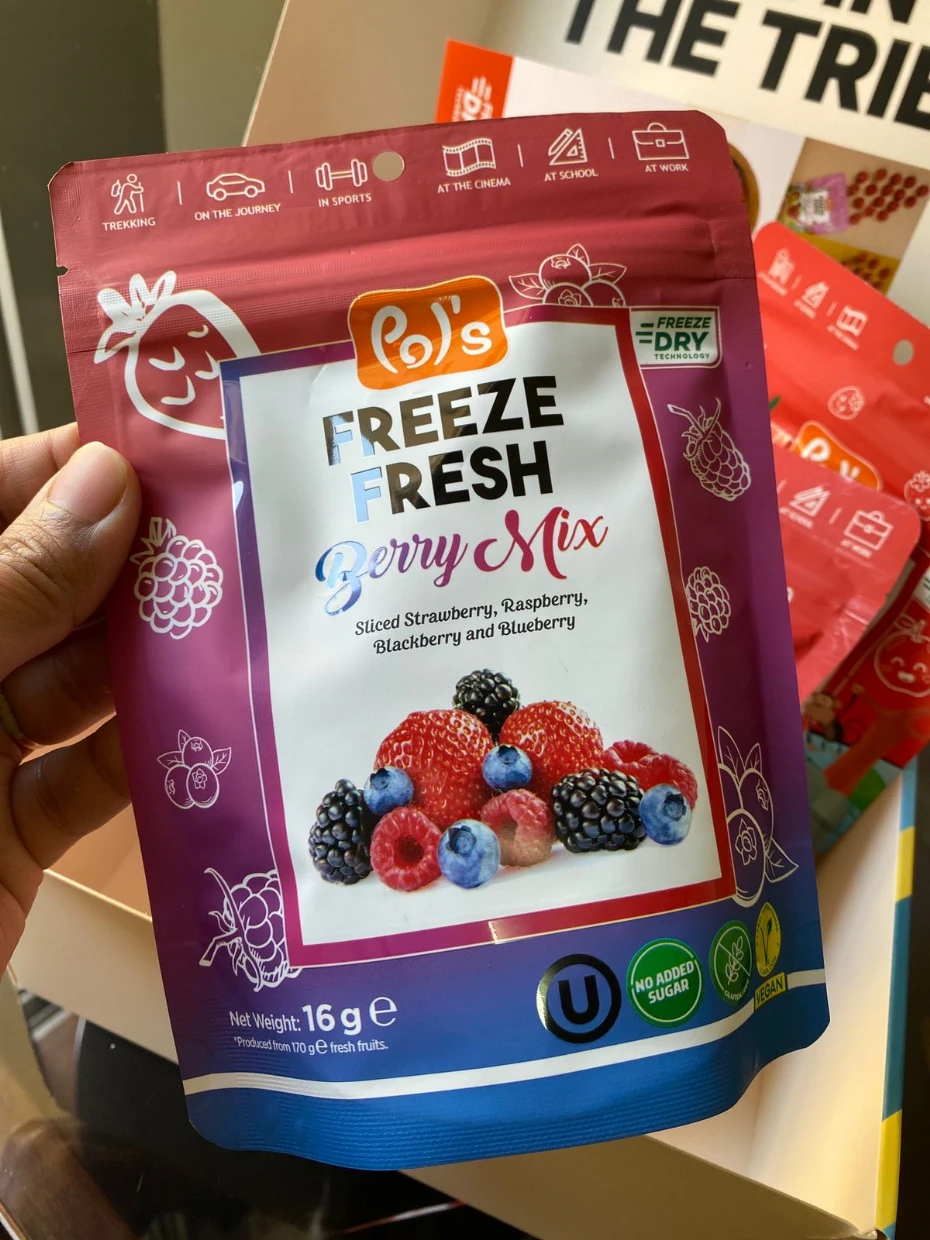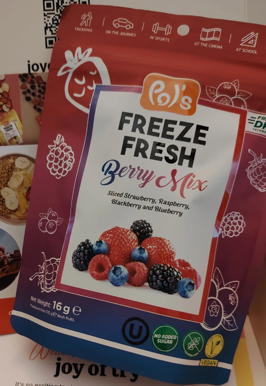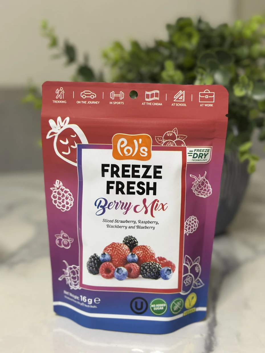 Pol’s Freeze Fresh Freeze-Dried Berry Mix is a delicious, no-added-sugar, vegan, gluten-free, and Halal treat—perfect for my coeliac diet. I love adding it to smoothies, breakfast bowls, granola, and açaí bowls. The berries also pair beautifully with coffee—I even mix strawberries into my V60 pour-over grounds for a unique twist. Highly recommend!