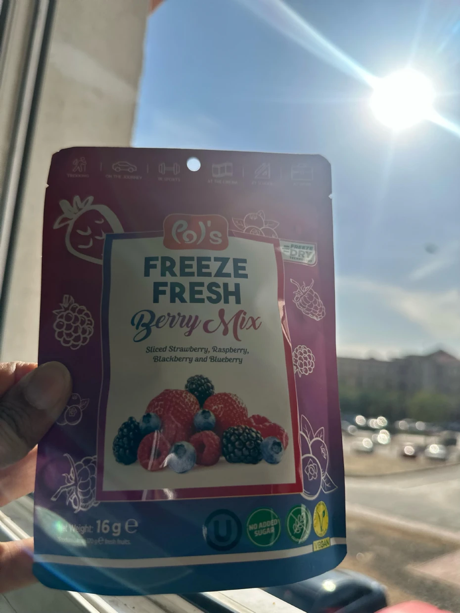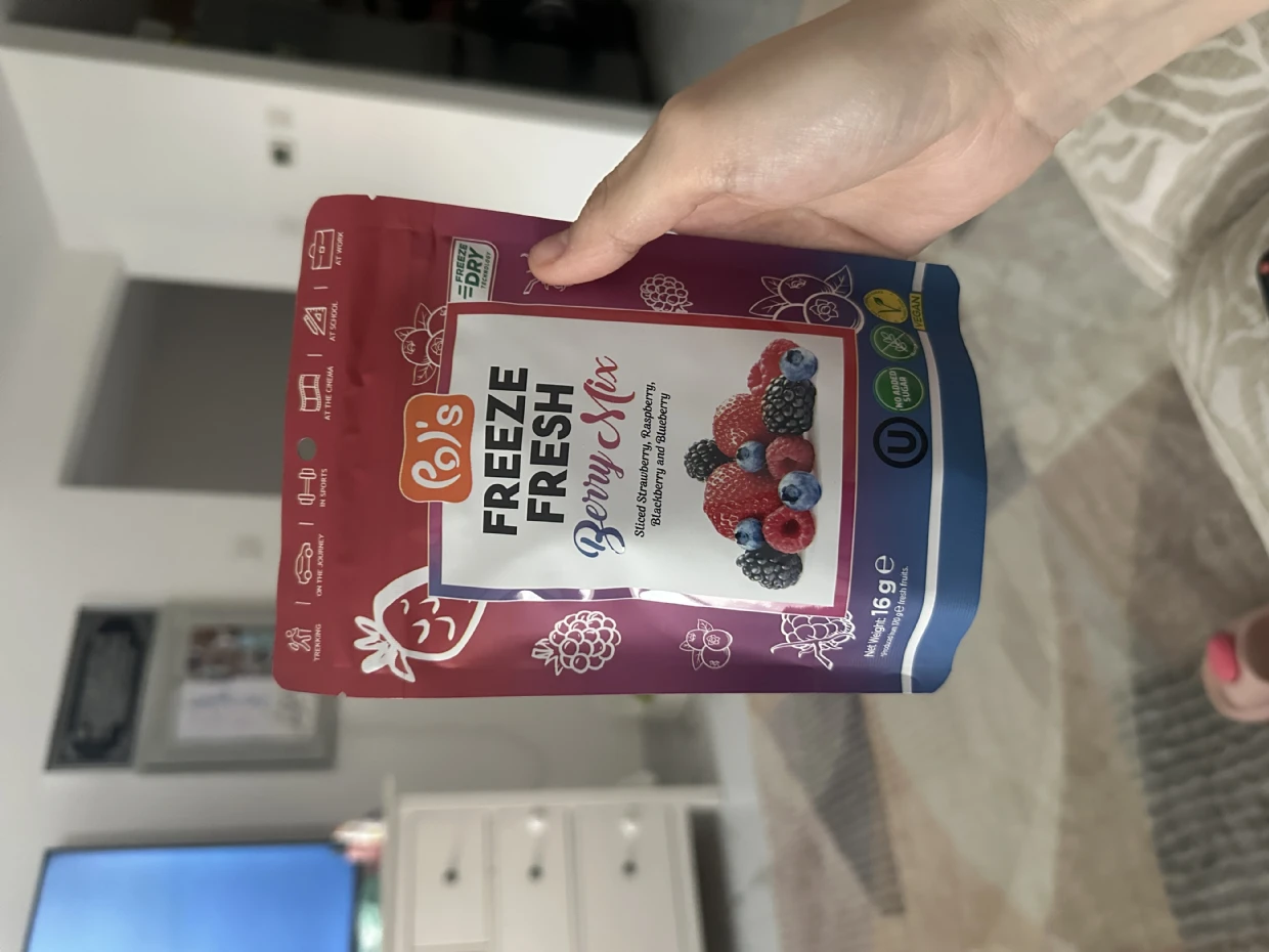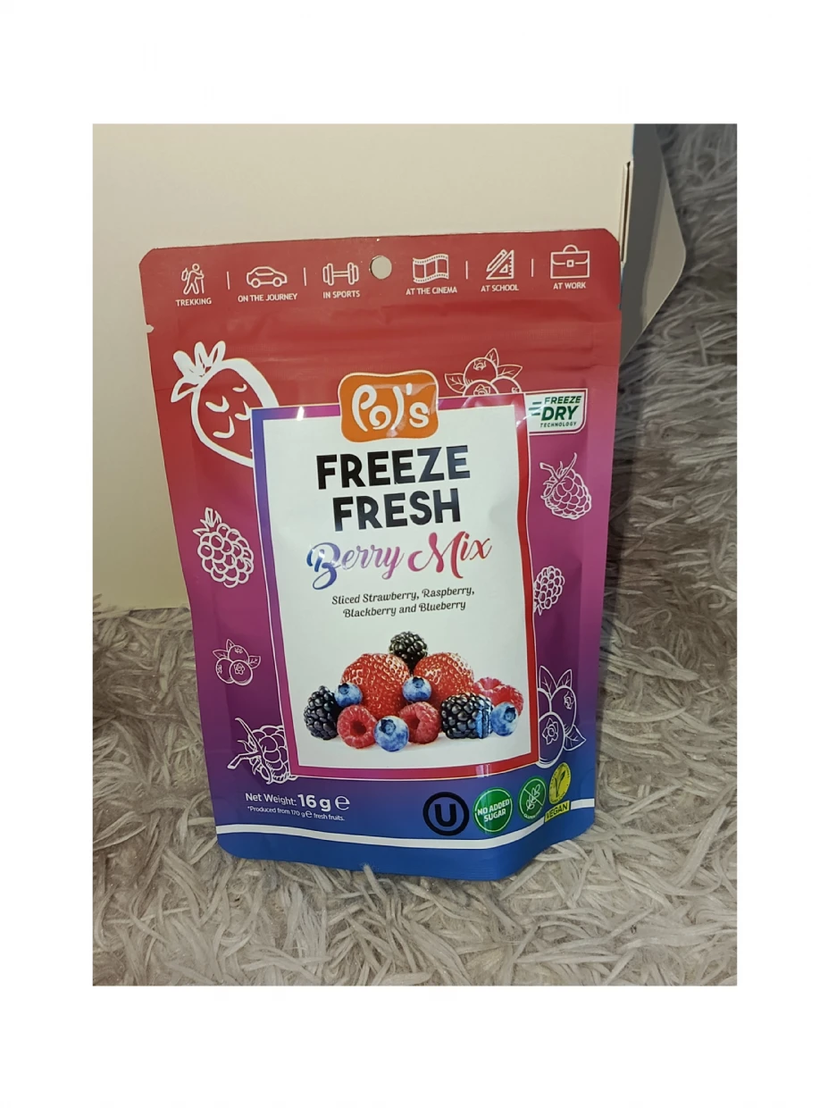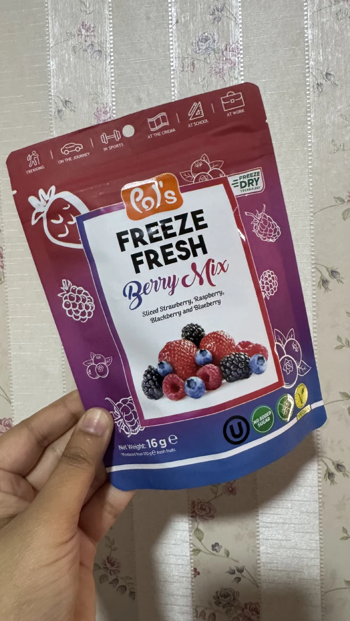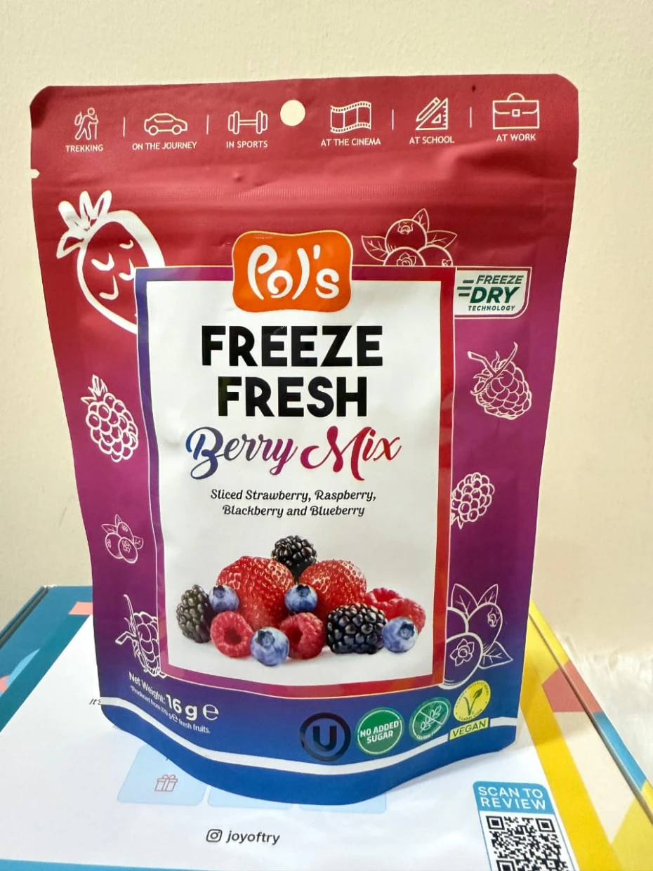 I tried the Pols Freeze Fresh Freeze-Dried Berry Mix, and it’s absolutely amazing! 🍓🫐🍒 The mix of berries delivers a delightful burst of natural sweetness and tanginess, with a perfectly crispy texture that melts in your mouth.
