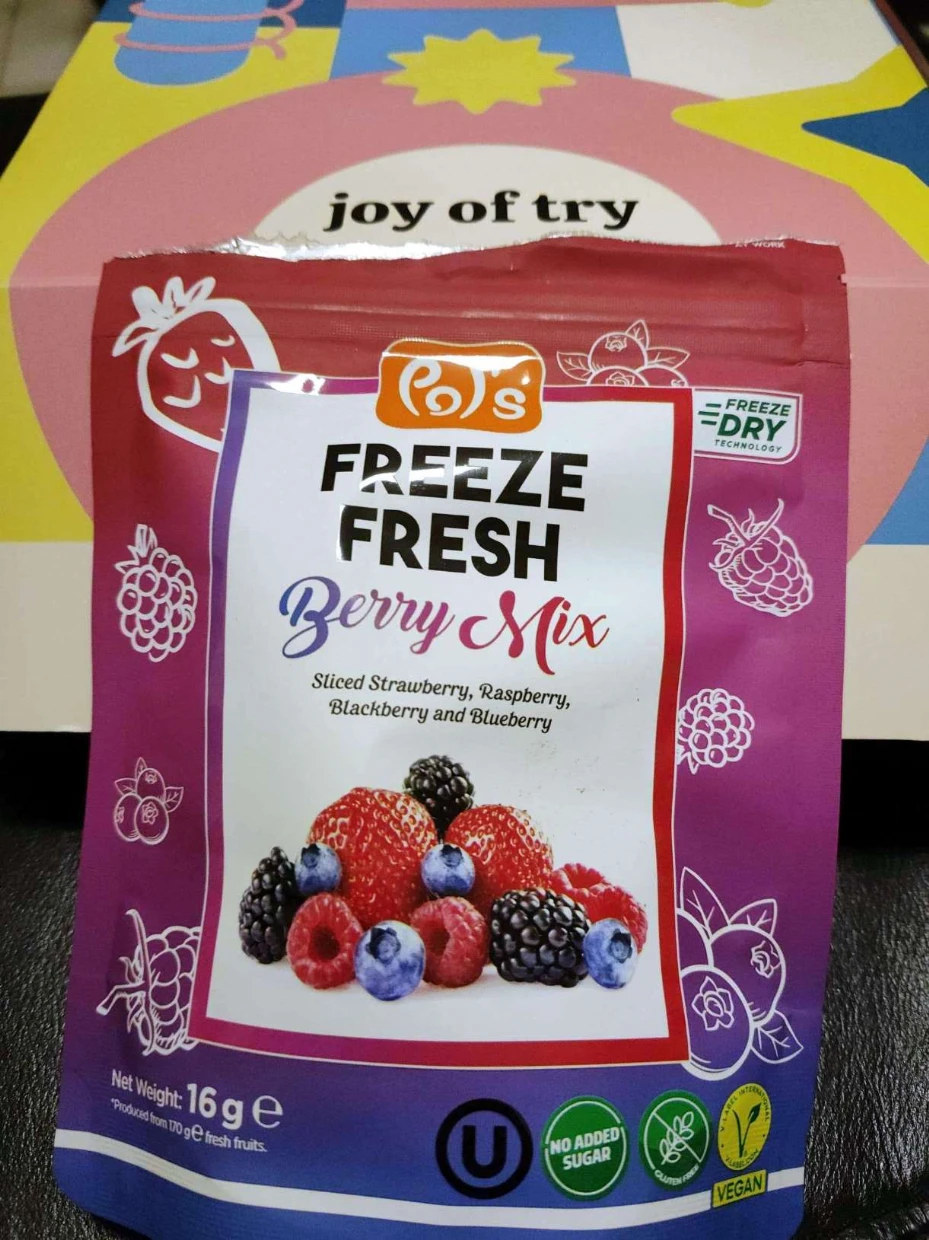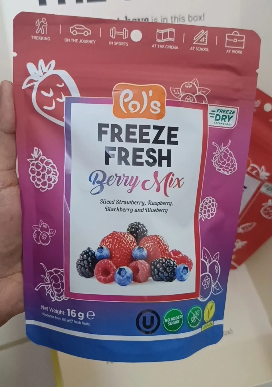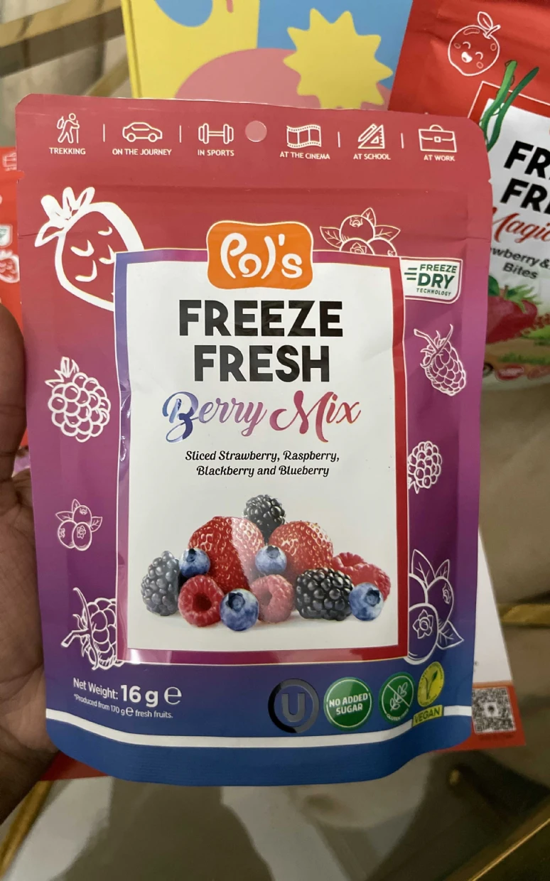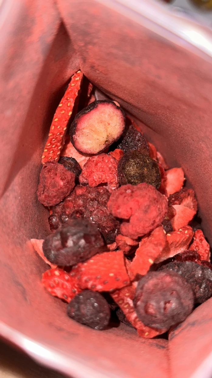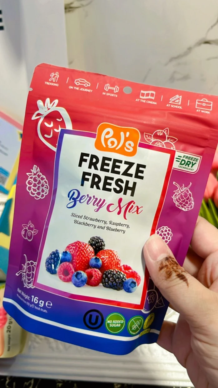 I tried the Pols Freeze Fresh Freeze-Dried Berry Mix, and it’s absolutely amazing! 🍓🫐🍒 The mix of berries delivers a delightful burst of natural sweetness and tanginess, with a perfectly crispy texture that melts in your mouth.