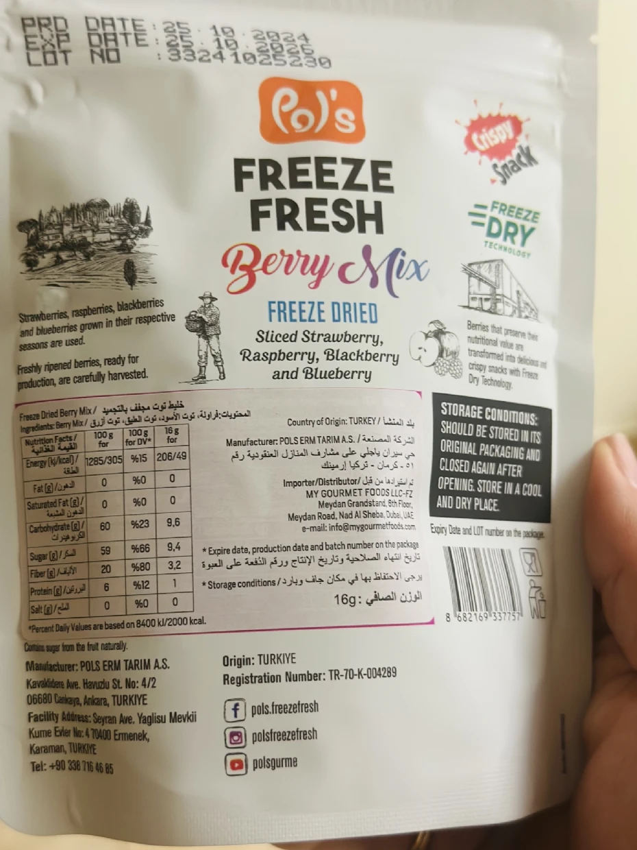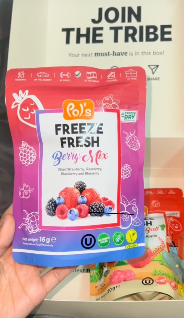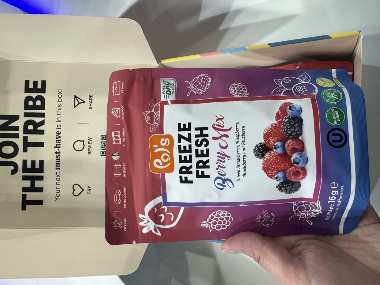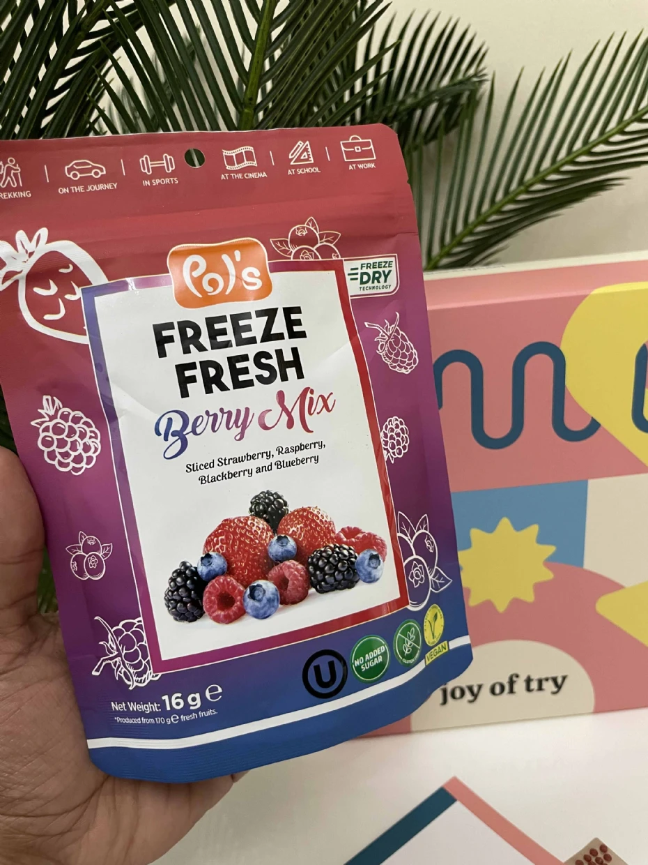 I tried the Pols Freeze Fresh Freeze-Dried Berry Mix, and it’s absolutely amazing! 🍓🫐🍒 The mix of berries delivers a delightful burst of natural sweetness and tanginess, with a perfectly crispy texture that melts in your mouth.