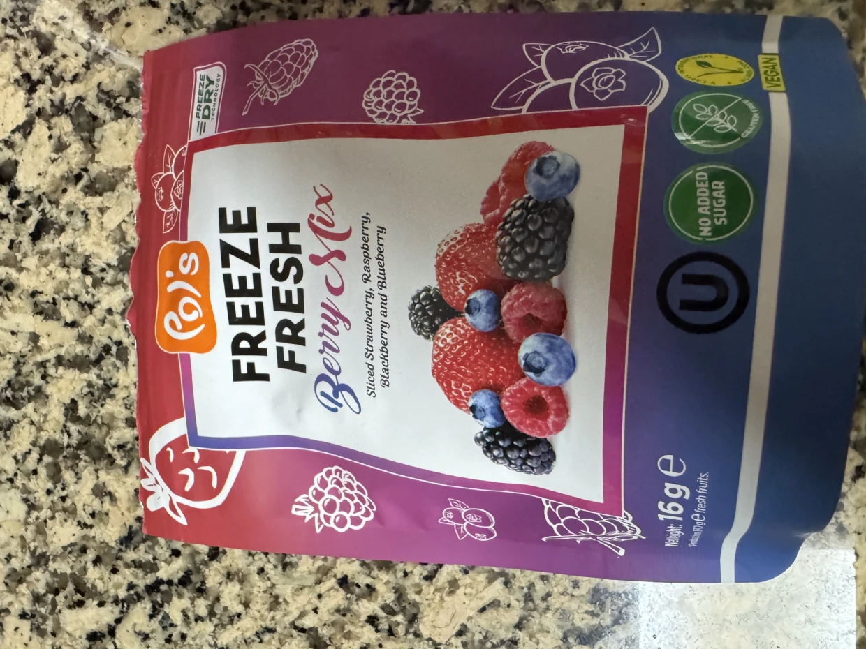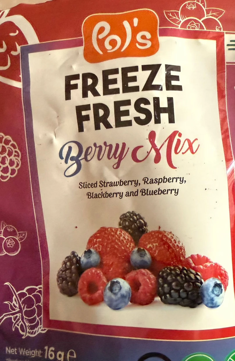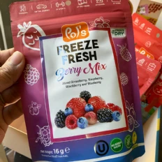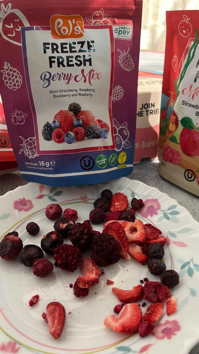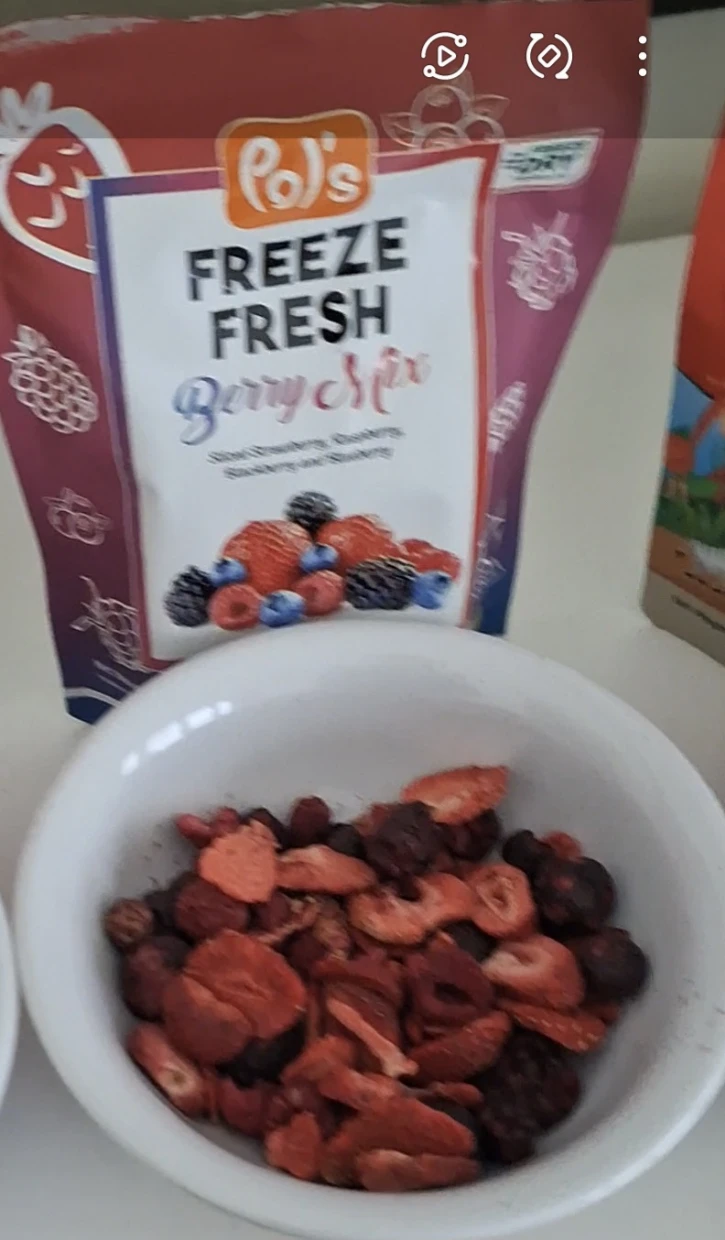 First time trying Pols Freeze Fresh Freeze-Dried Berry Mix.My kid loves it