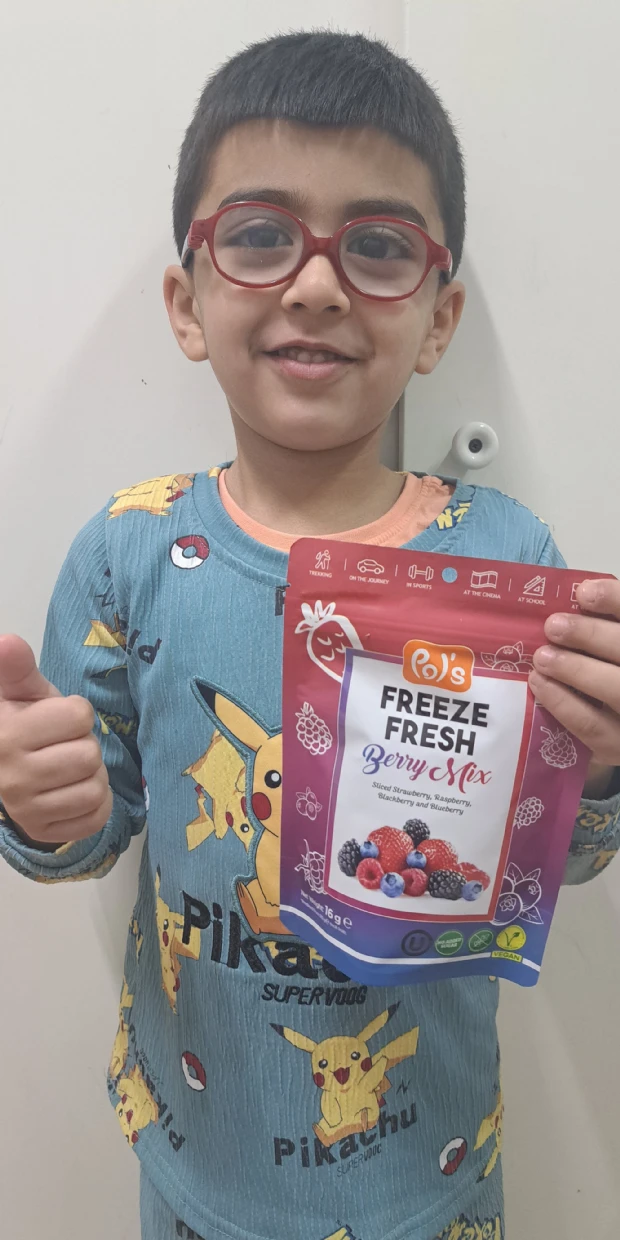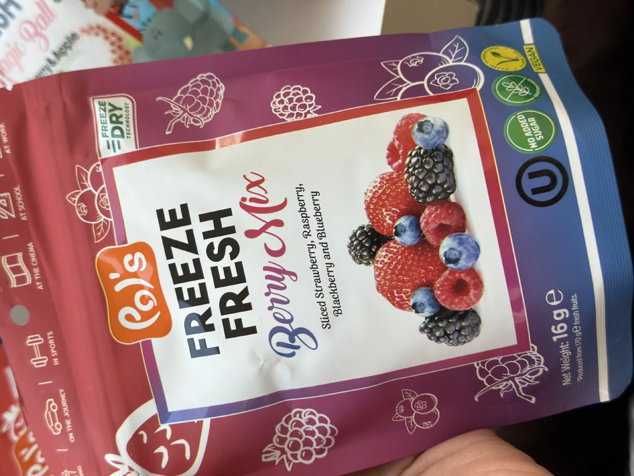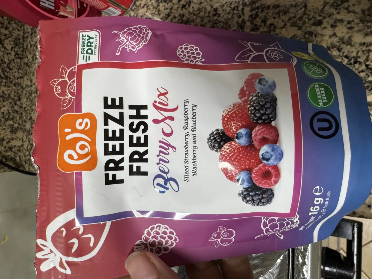 First time trying Pols Freeze Fresh Freeze-Dried Berry Mix.My kid loves it
