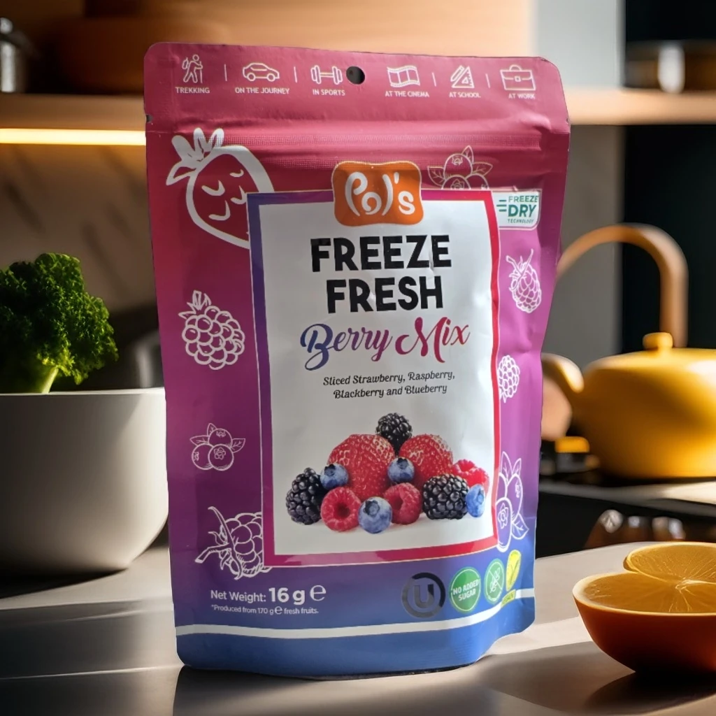Pol’s Freeze Fresh Berry Mix is a healthy, tasty, and convenient snack with no added sugar, and it works wonderfully in muffins and overnight oats for a flavorful twist.