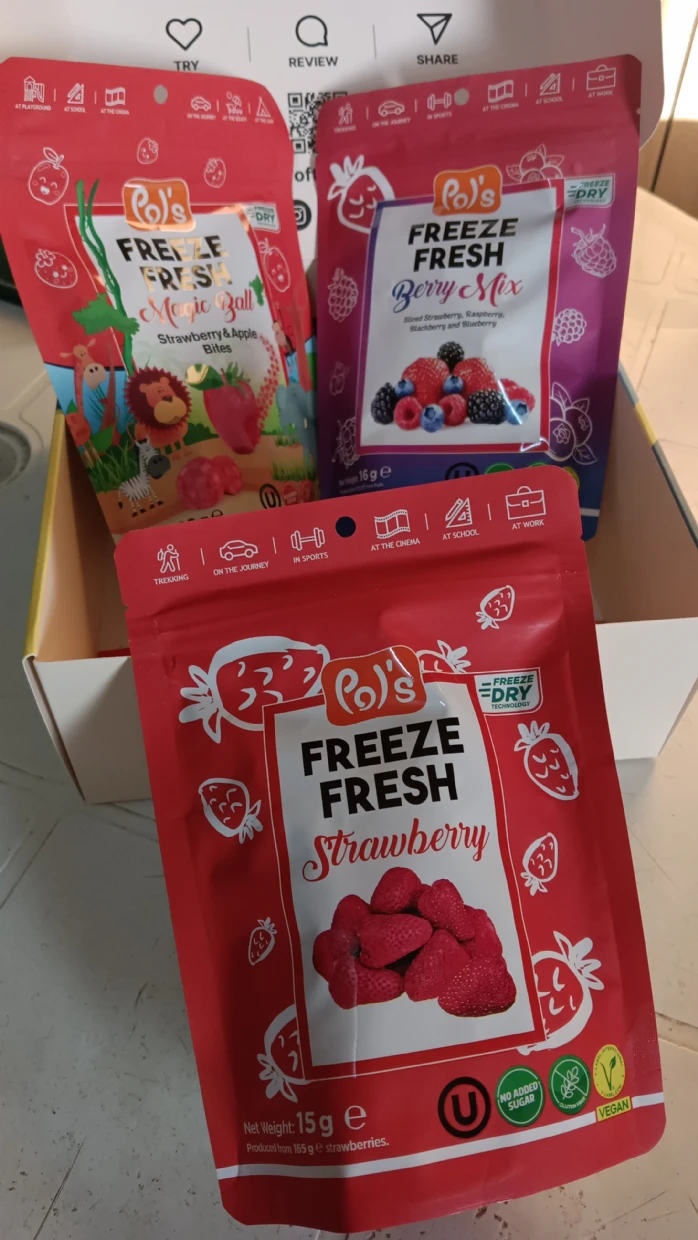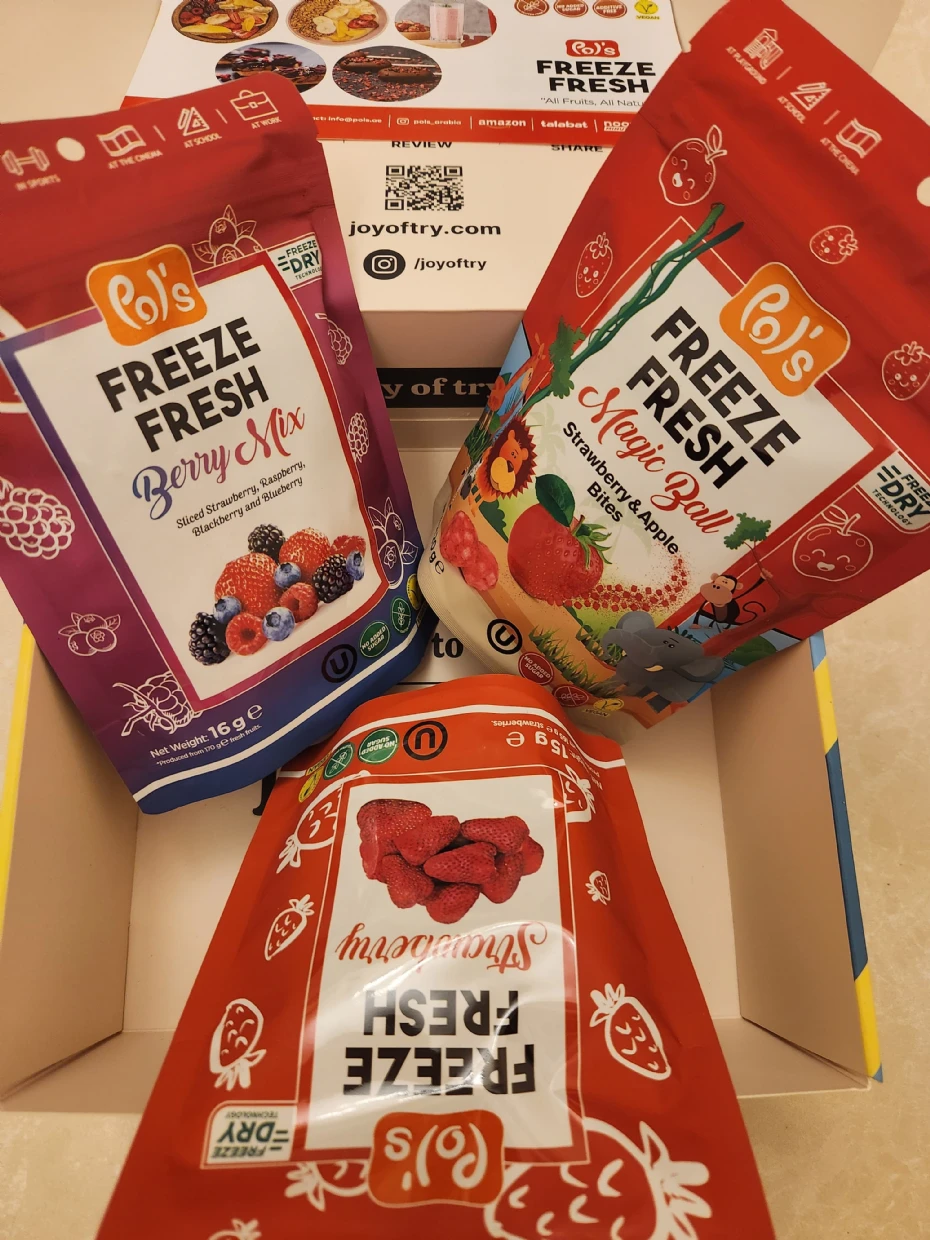 I absolutely loved trying out Po’s Freeze Fresh snacks! The quality of the freeze-dried fruits is impressive—crispy, full of natural flavor, and without any added sugar. The Berry Mix was my favorite, bursting with a perfect blend of strawberries, raspberries, blackberries, and blueberries. The Strawberry and Magic Ball varieties were equally satisfying, making for a great healthy snack option.