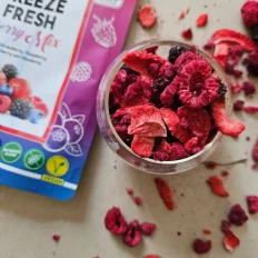 Perfect for snacking straight out of the pack, adding to cereals, yogurt, or smoothie bowls, this berry mix delivers a burst of fruity goodness in every bite. The light and crispy texture makes it a fun and healthy alternative to traditional dried fruits.