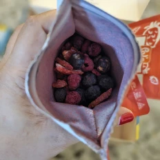 This convenient and nutritious snack option, combining the flavors of various berries into a single package. I like how it balances the sourness, sweetness and crunchiness of the snack in every bite