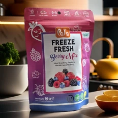 Pol’s Freeze Fresh Freeze-Dried Berry Mix is a game-changer! The combination of strawberries, blueberries, and raspberries provides a burst of natural sweetness and an amazing crunch. With no added sugars or preservatives and made from 100% real fruit, it’s a healthy and super convenient snack. Whether you toss it into yogurt, blend it into a smoothie, or snack on it straight from the bag, it’s the perfect treat for anyone looking for something both delicious and nutritious!