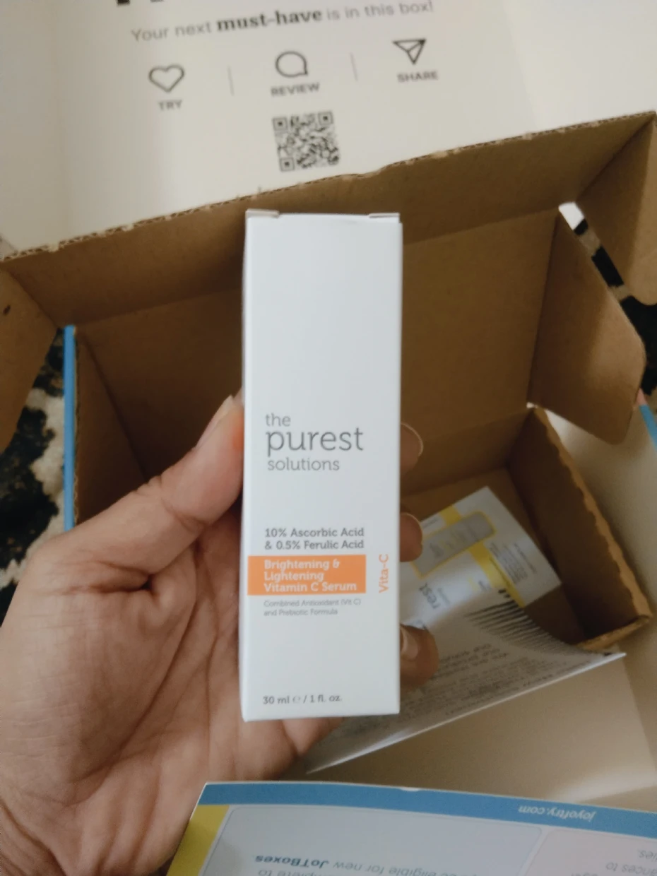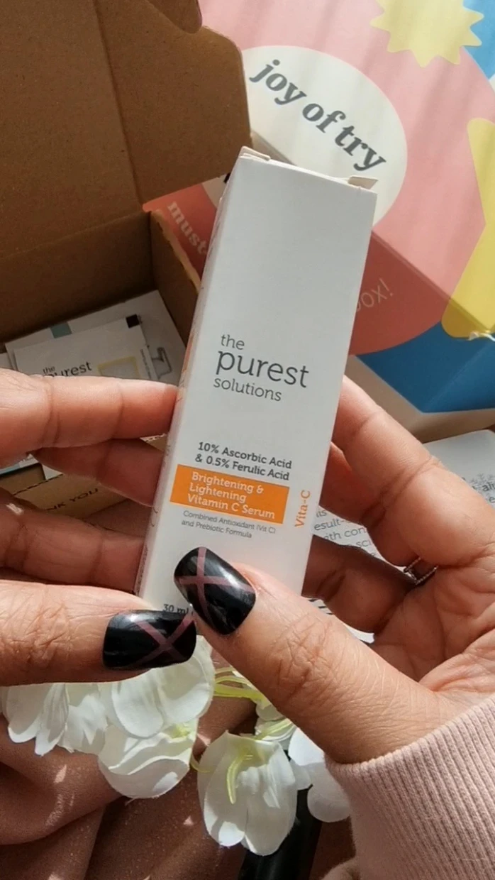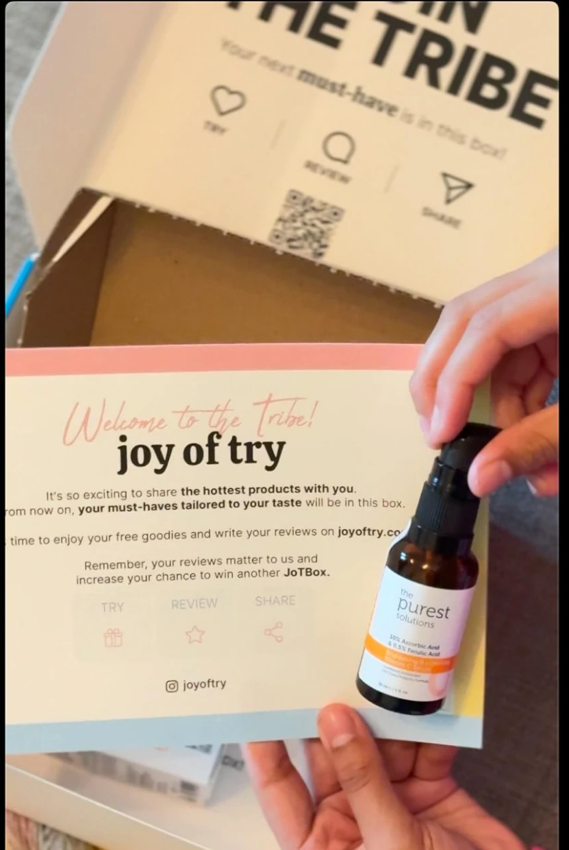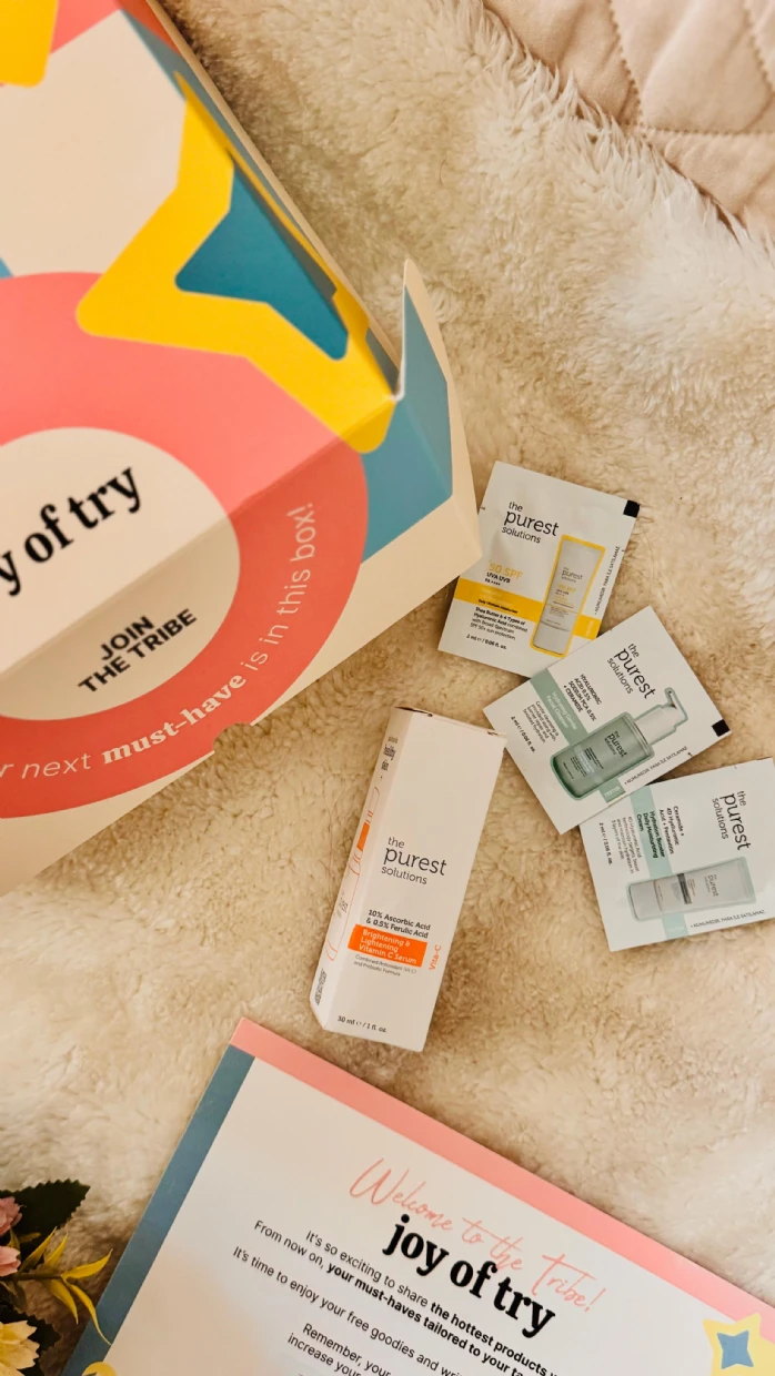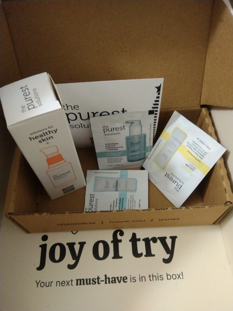 “I recently got my hands on the Purest Solutions skincare products through Joy of Try, and I’m genuinely impressed! The packaging is super cute and eco-friendly, which is a huge plus. I tried the 10% Ascorbic Acid serum, and it left my skin feeling refreshed and glowing. The samples provided are great for on-the-go use, and the information cards make it easy to understand the product benefits. Highly recommended for anyone looking to elevate their skincare routine!