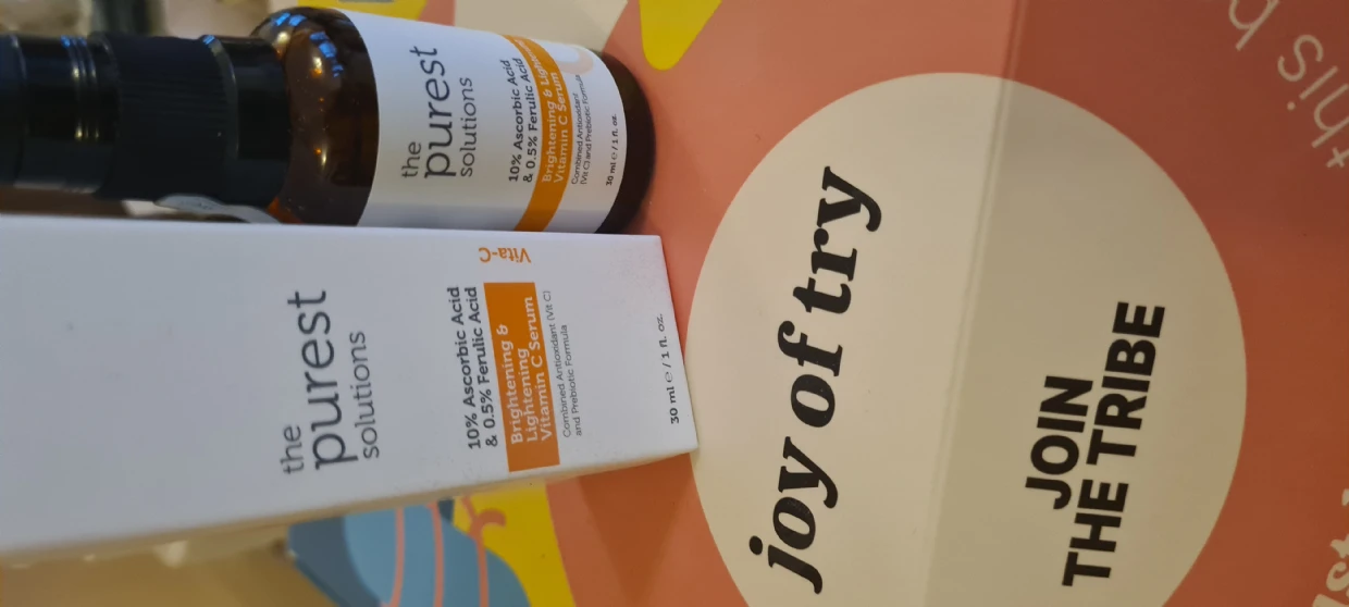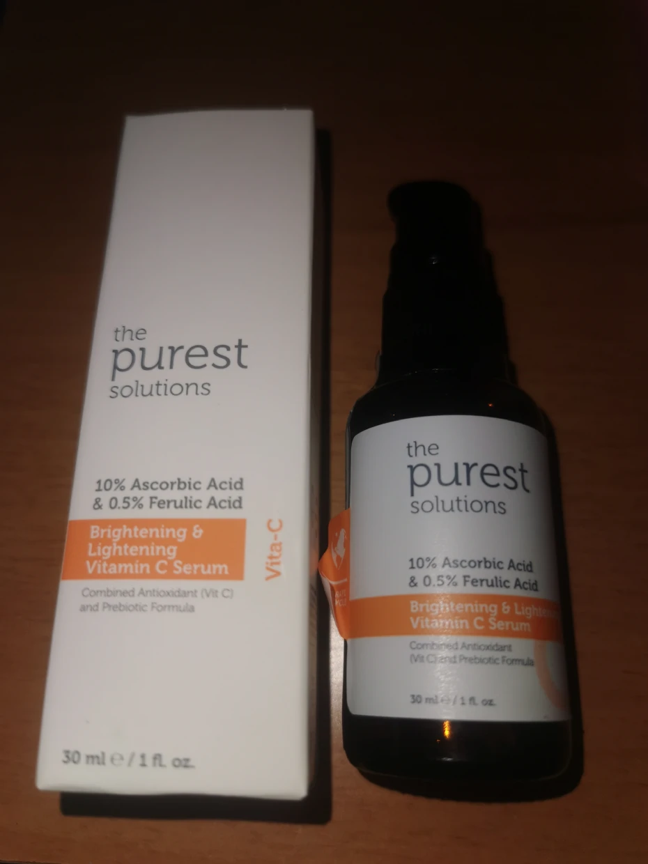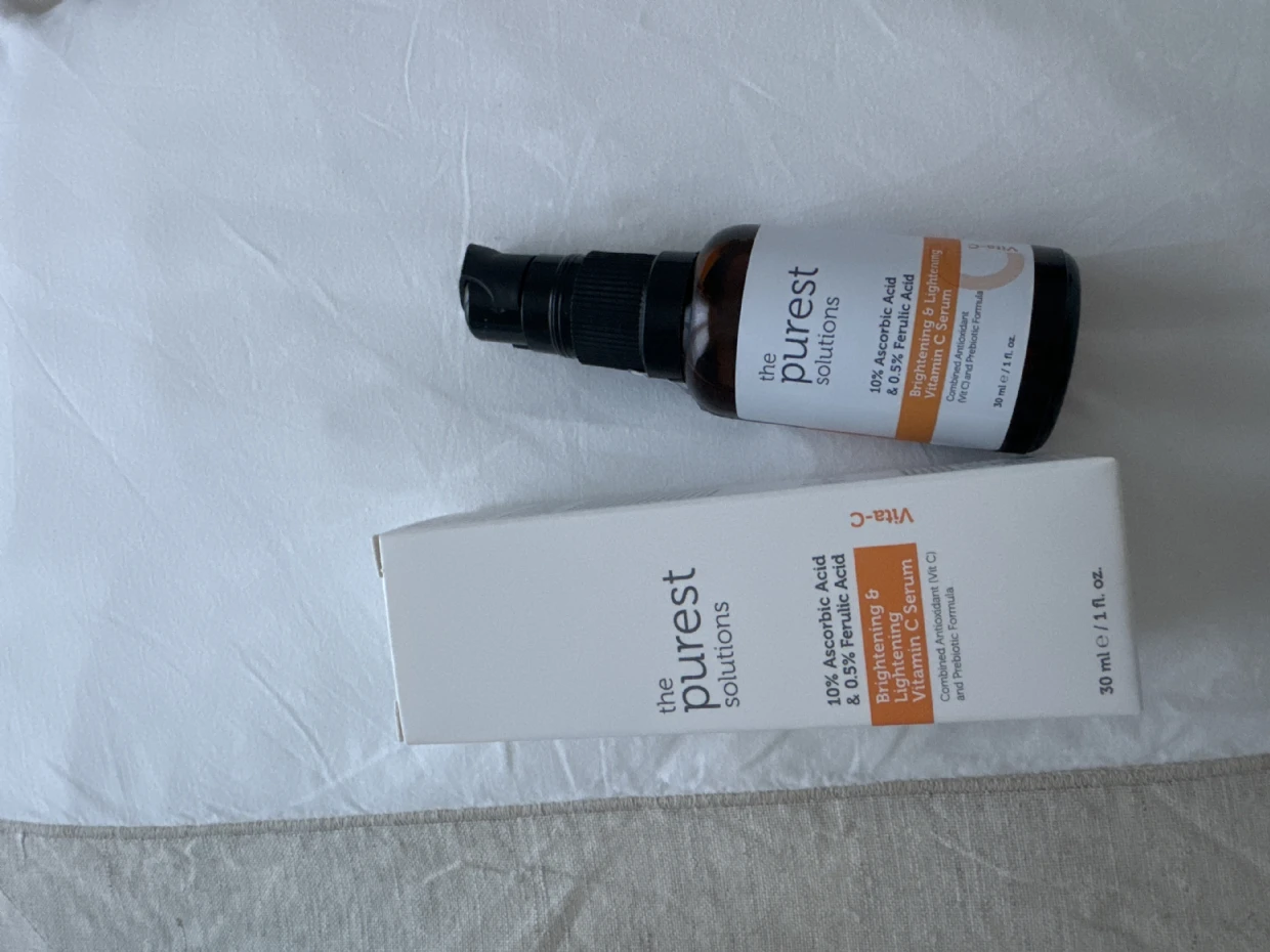 I have been using the Vitamin C from Purest solutions for almost 10 days now and I am very impressed with the results. My skil feels brighter and more even toned with a noticeable reduction in dark spots. The serum absorbs quickly without leaving any greasy residue and it works well under my moisturiser. Overall its a fantastic addition to my skincare routine and I highly recommend it for anyone looking to enhance their skin radiance and clarity.