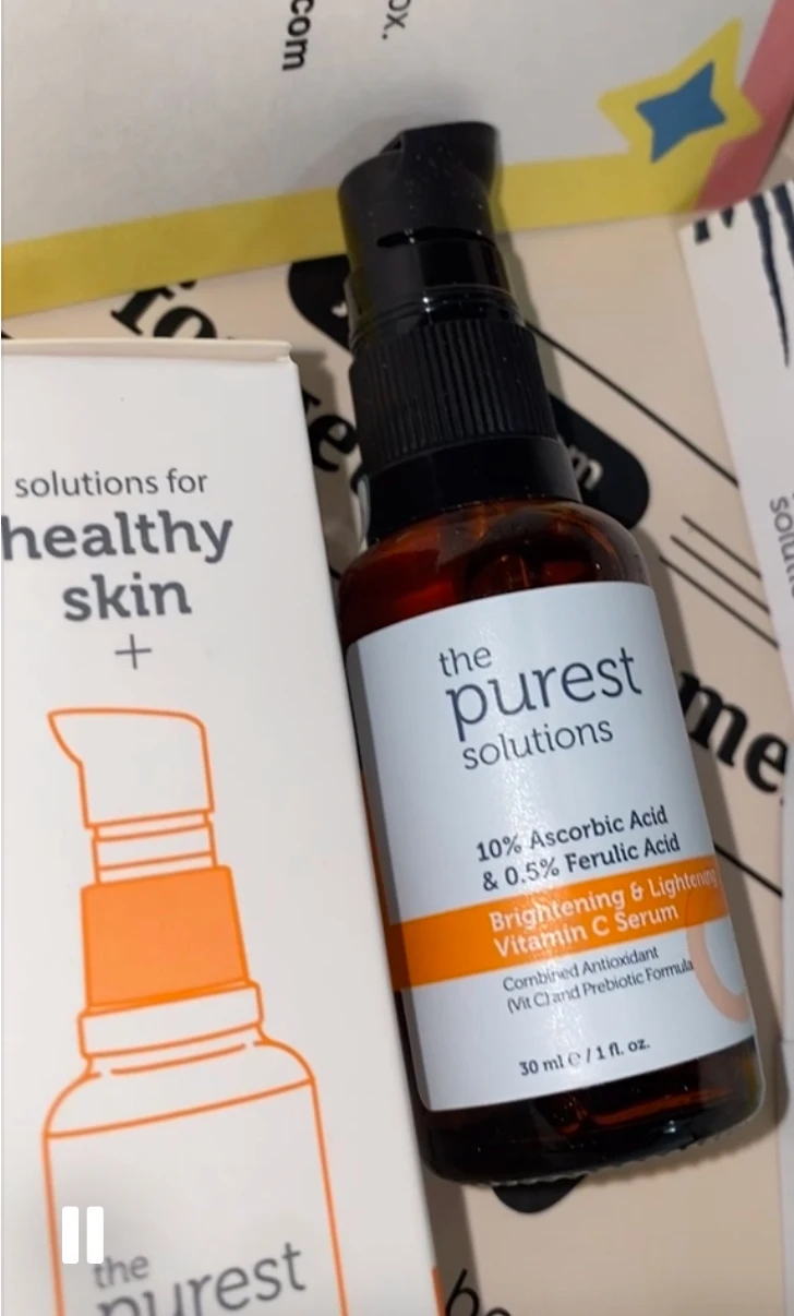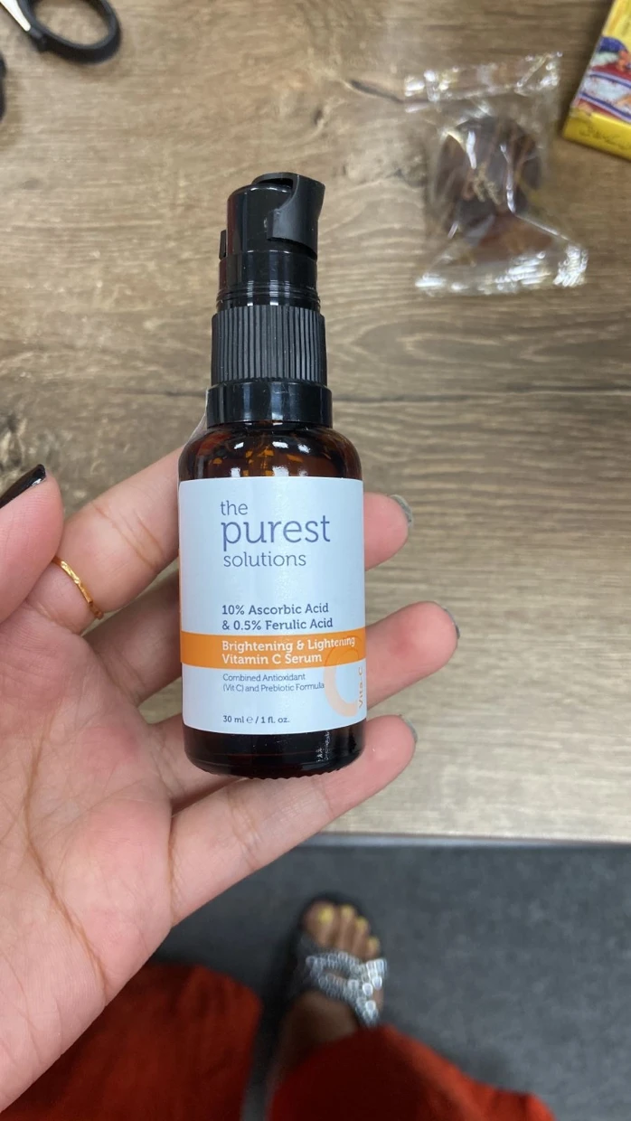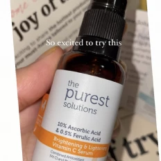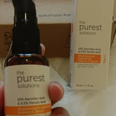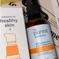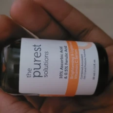 The purest solution vitamin C is game-changer for my skin! The lightweight formula absorbs quickly, leaving no sticky residue, and it has noticeably brightened my complexion. My skin feels smoother, The product also pairs well with my other skincare items without causing irritation. Overall, this is a high-quality, effective Vitamin C product that I would highly recommend to anyone looking to boost their skincare routine!