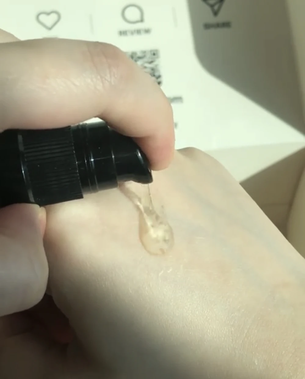 Very light serum that is being absorbed by the skin quickly which makes it easy to use under make up