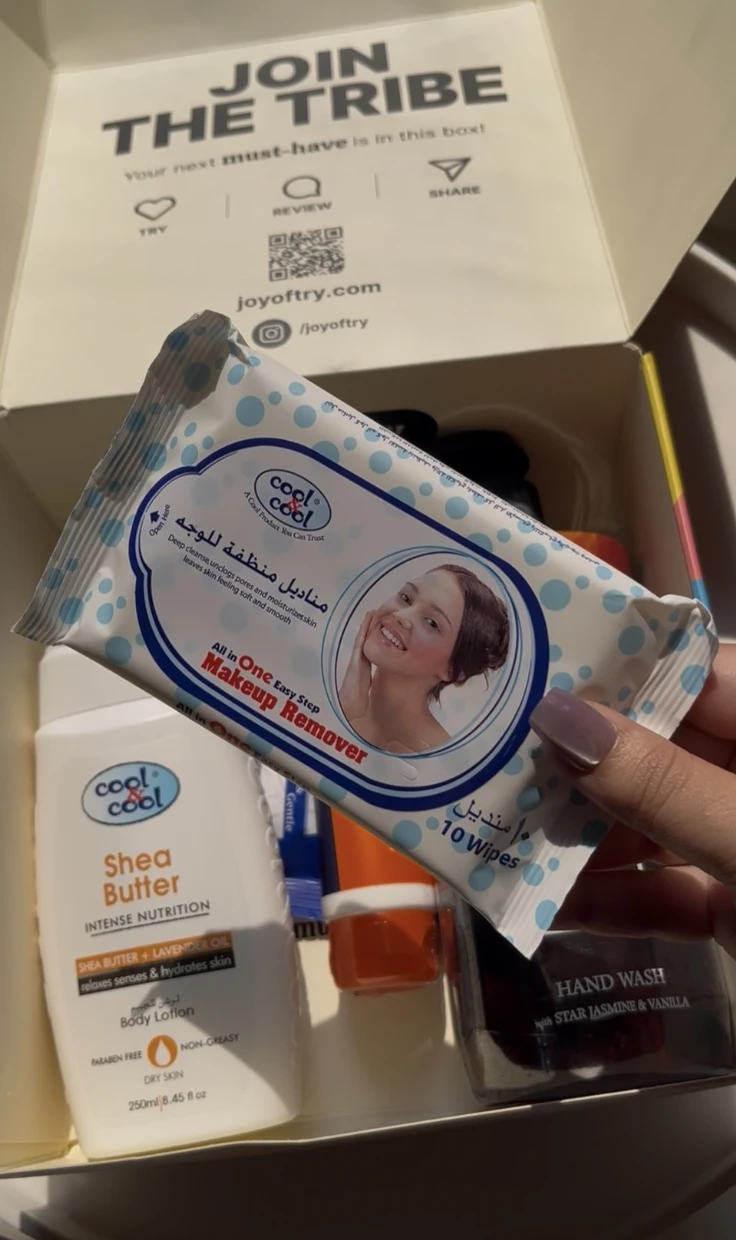 I always keep the Cool & Cool Makeup Remover with me, especially when I’m camping. It’s perfect for removing makeup before sleeping, which is super important since water isn’t always easy to access when we’re out in places like Qudra or the beach. Using this has become a staple for me to avoid breakouts. I make sure to remove my makeup properly before putting on my skincare.