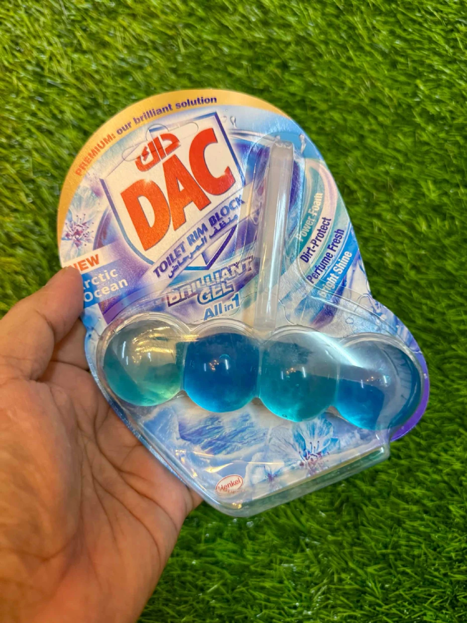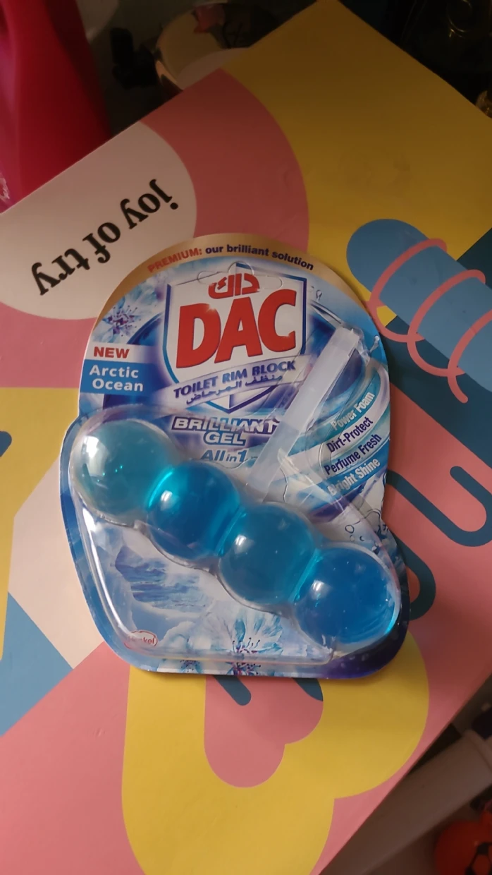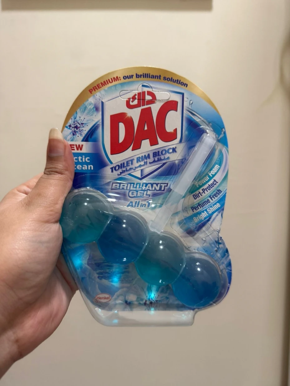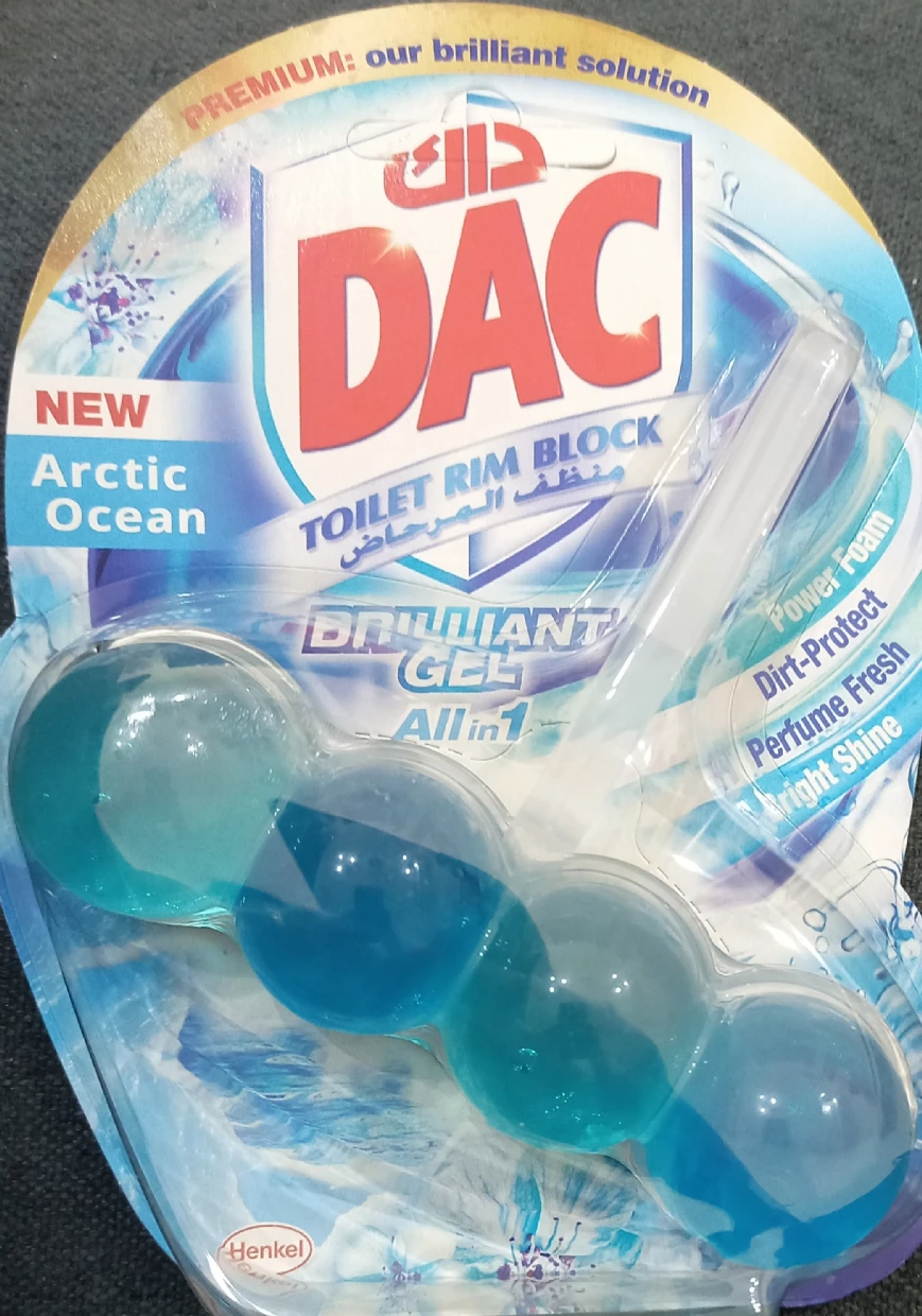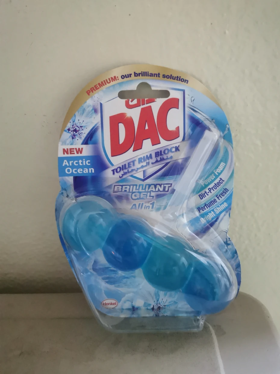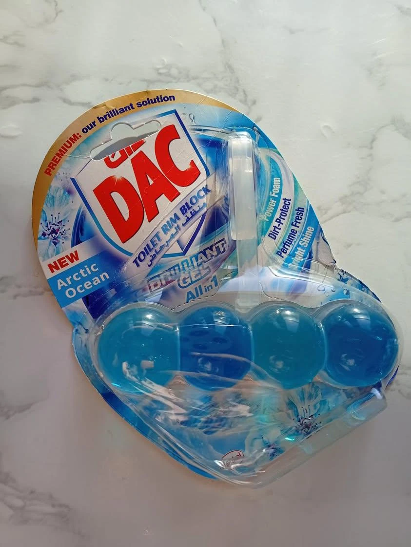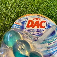 The DAC Toilet Rim Block in New Arctic Ocean is fantastic! The Perfume Fresh scent is refreshing, and the Brilliant Gel formula with Power Foam cleans and shines effortlessly. The Dirt-Protect feature keeps the toilet cleaner for longer, and the Bright Shine gives it a polished look.