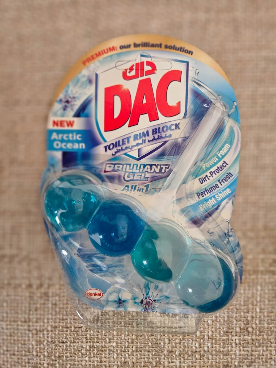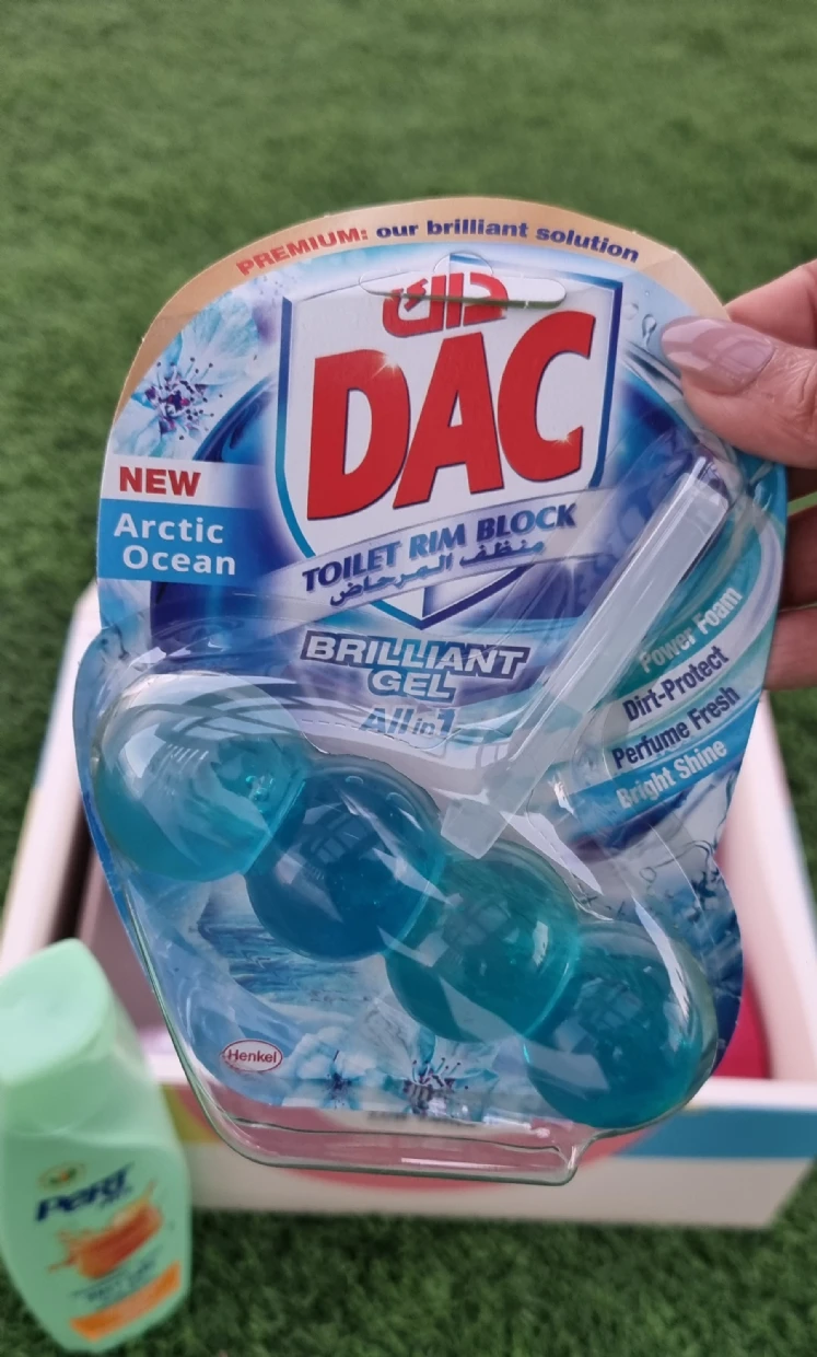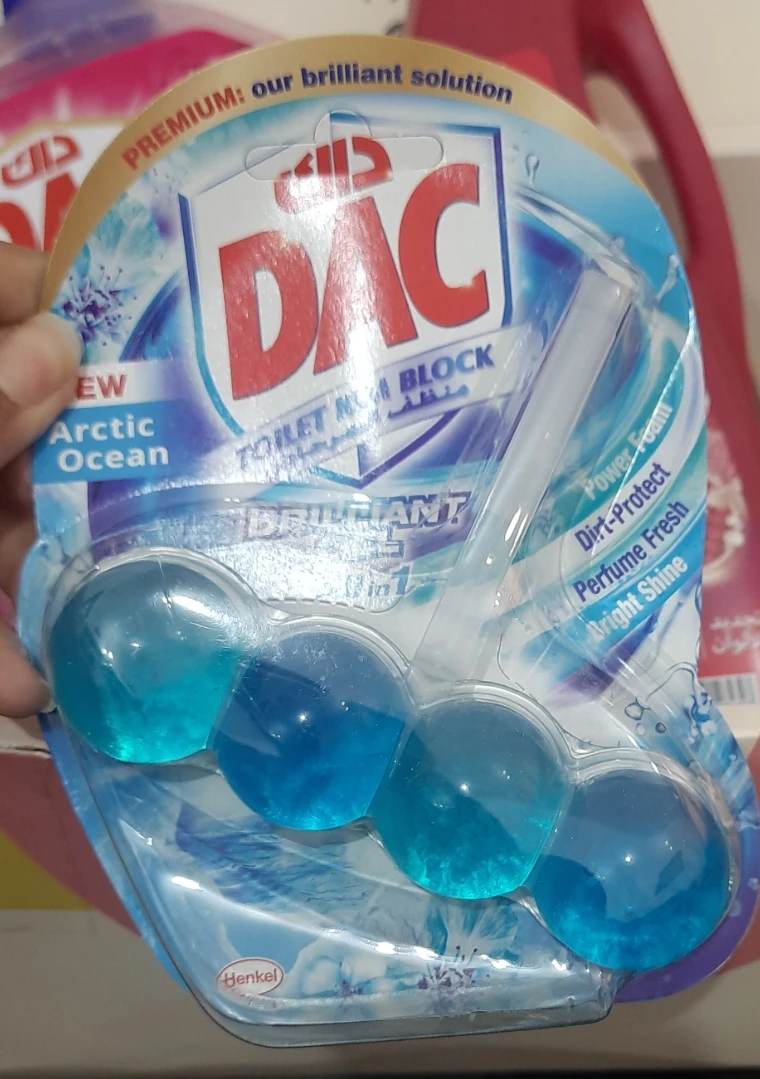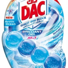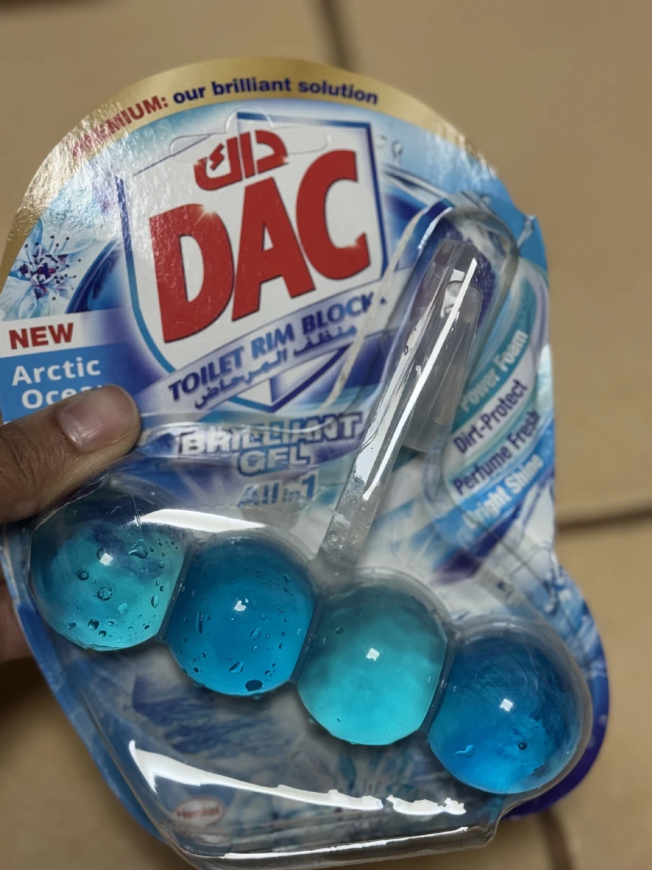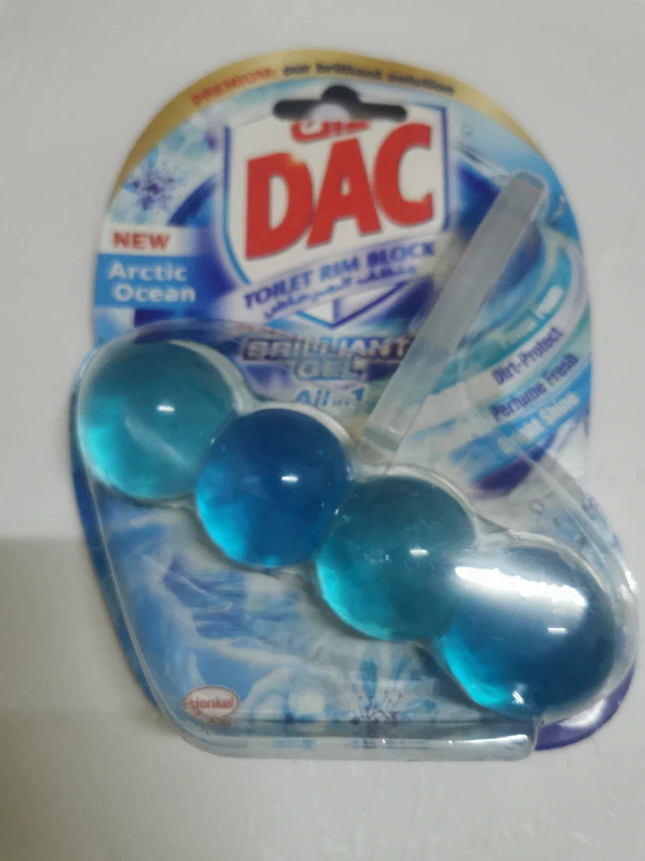 The DAC Toilet Rim Block in New Arctic Ocean is fantastic! The Perfume Fresh scent is refreshing, and the Brilliant Gel formula with Power Foam cleans and shines effortlessly. The Dirt-Protect feature keeps the toilet cleaner for longer, and the Bright Shine gives it a polished look.