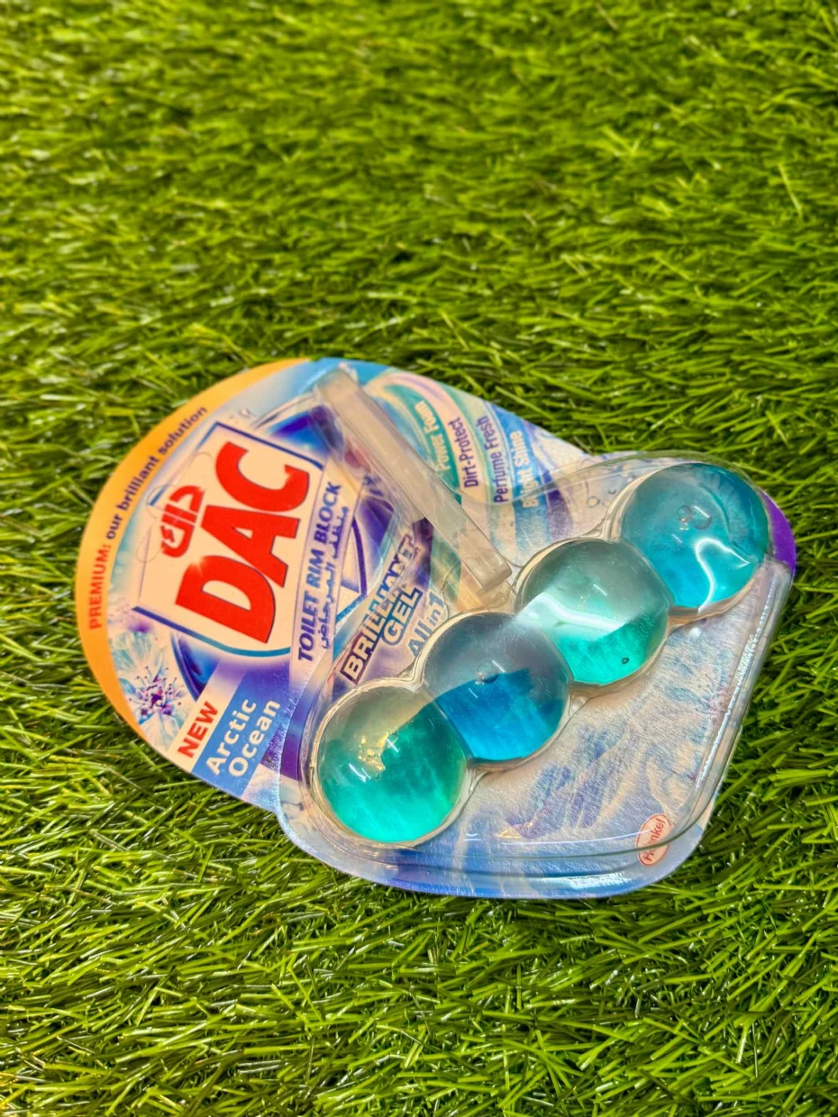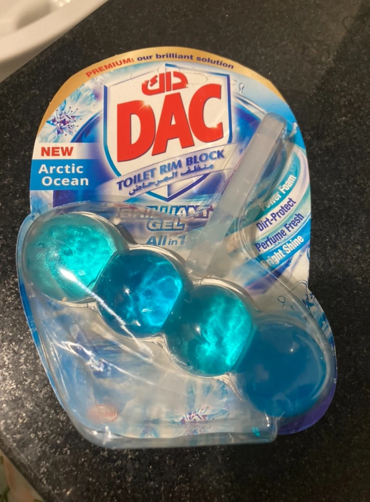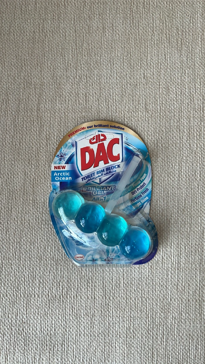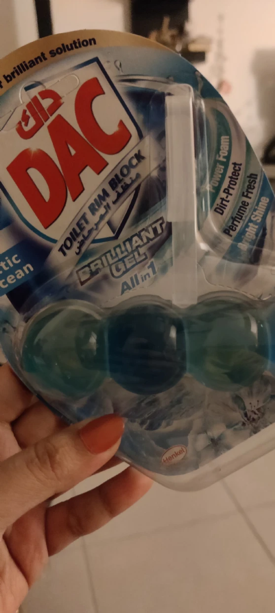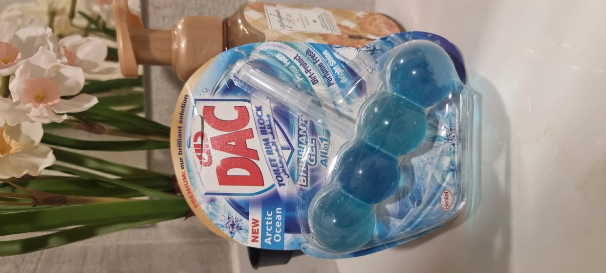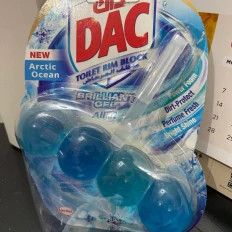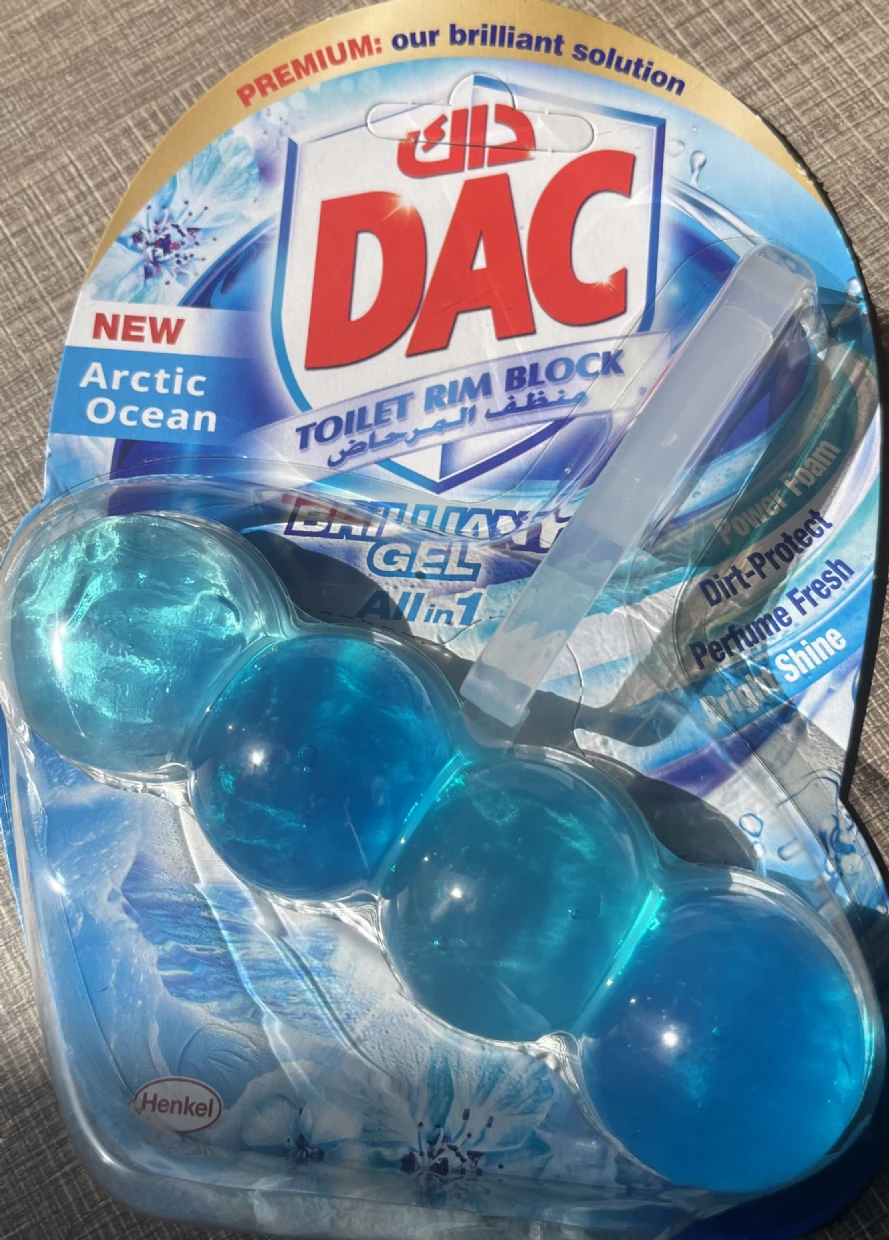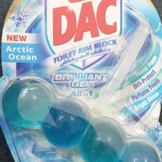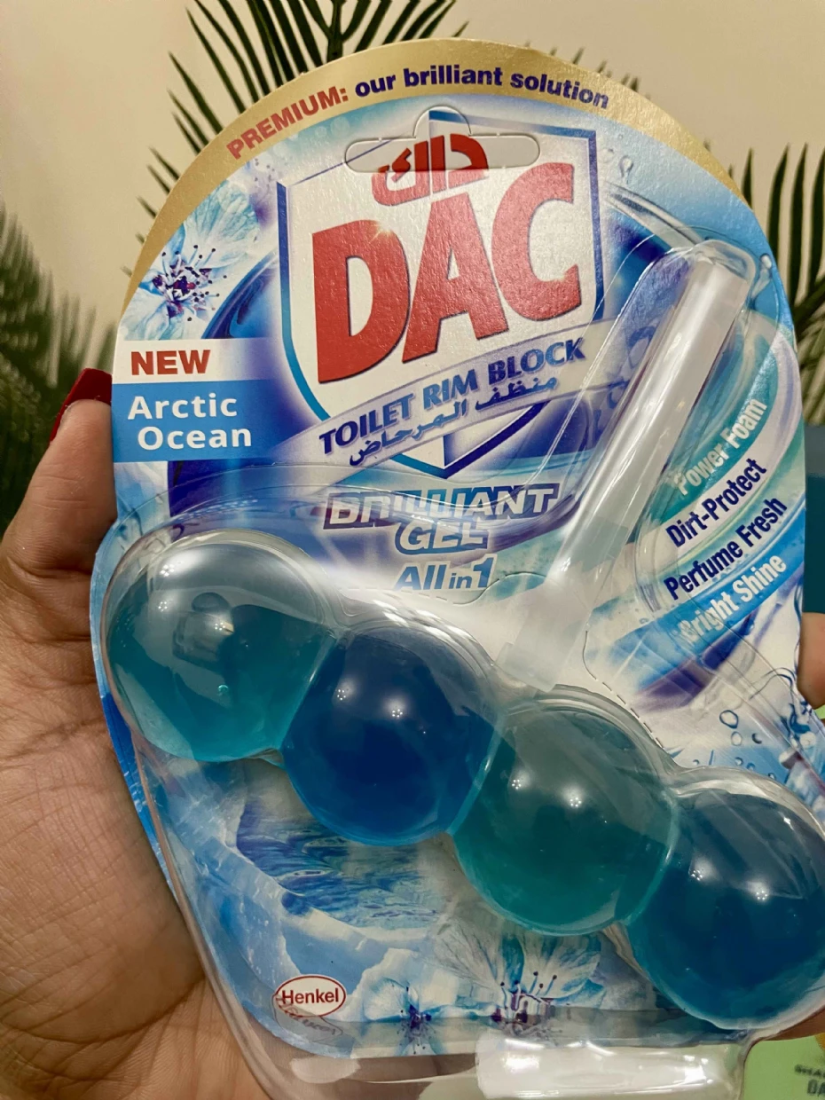 The DAC Toilet Rim Block in New Arctic Ocean is fantastic! The Perfume Fresh scent is refreshing, and the Brilliant Gel formula with Power Foam cleans and shines effortlessly. The Dirt-Protect feature keeps the toilet cleaner for longer, and the Bright Shine gives it a polished look.