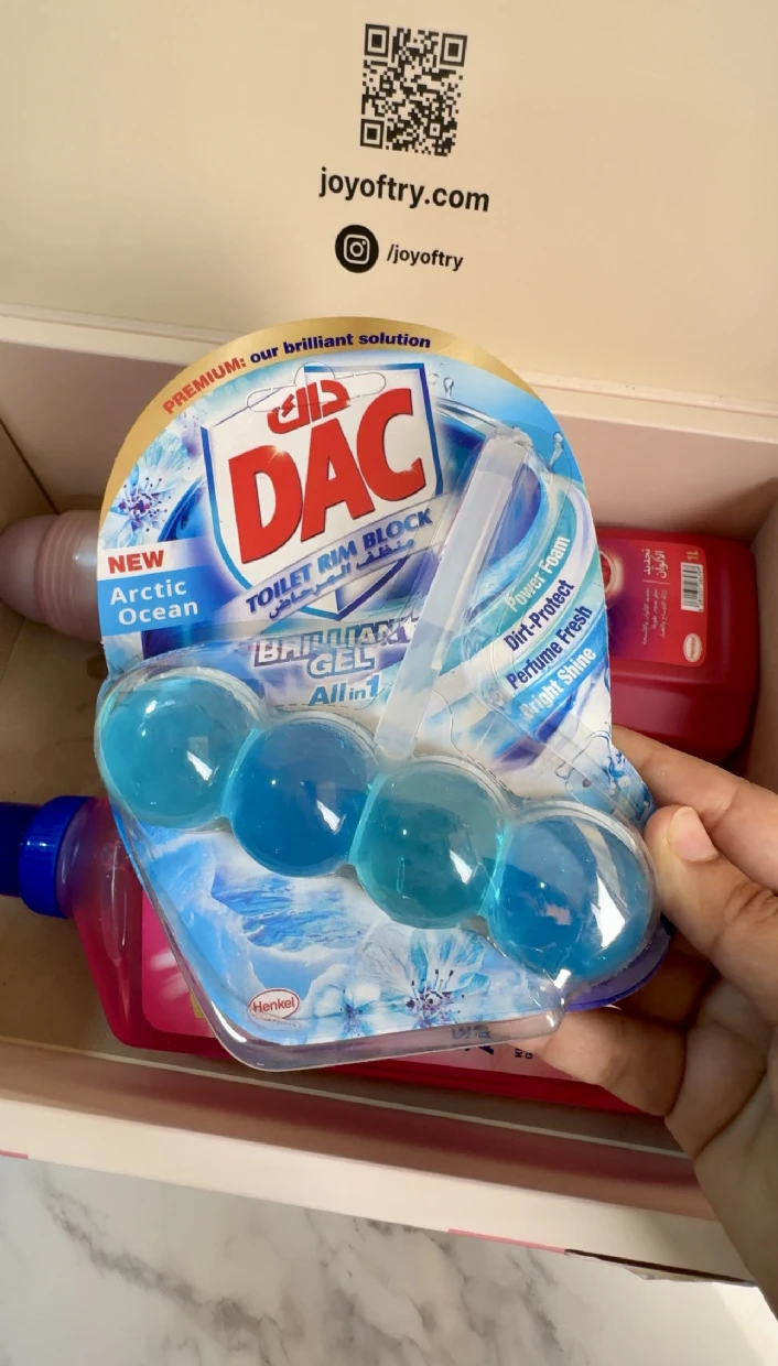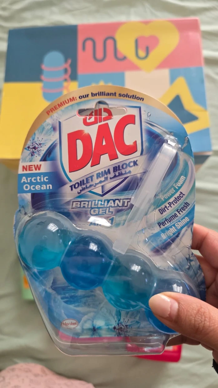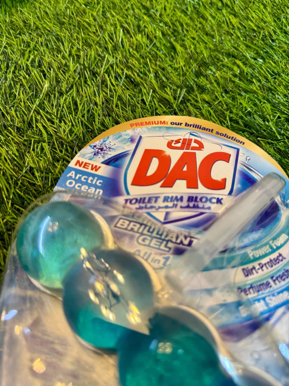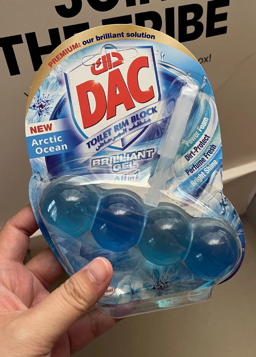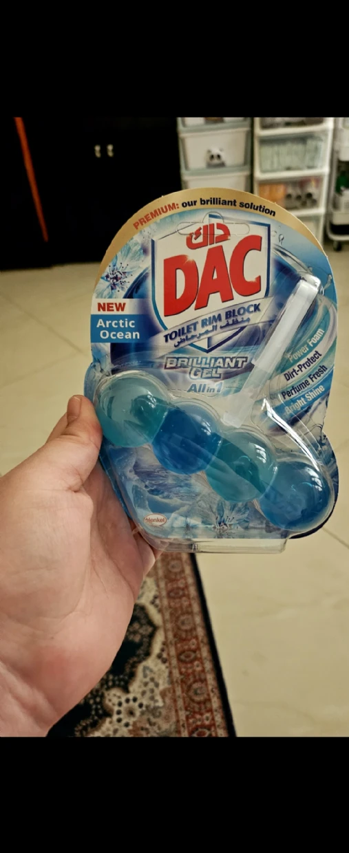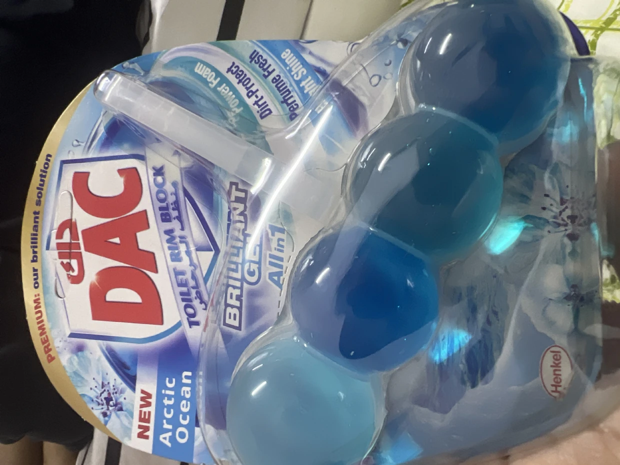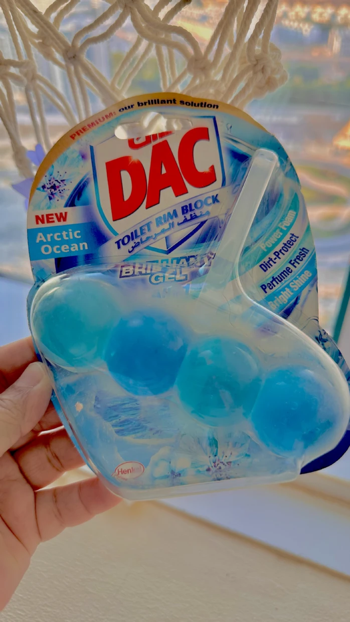 The DAC Toilet Rim Block in New Arctic Ocean is fantastic! The Perfume Fresh scent is refreshing, and the Brilliant Gel formula with Power Foam cleans and shines effortlessly. The Dirt-Protect feature keeps the toilet cleaner for longer, and the Bright Shine gives it a polished look.