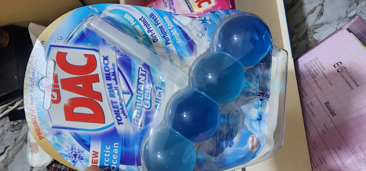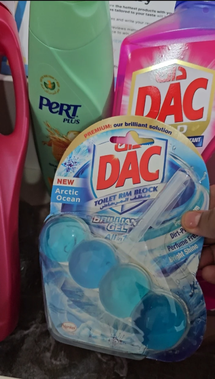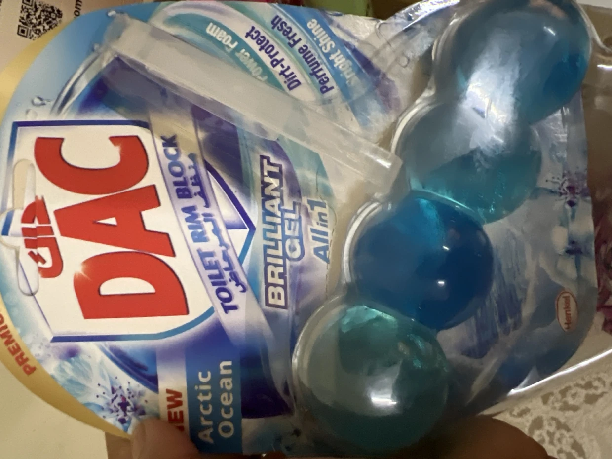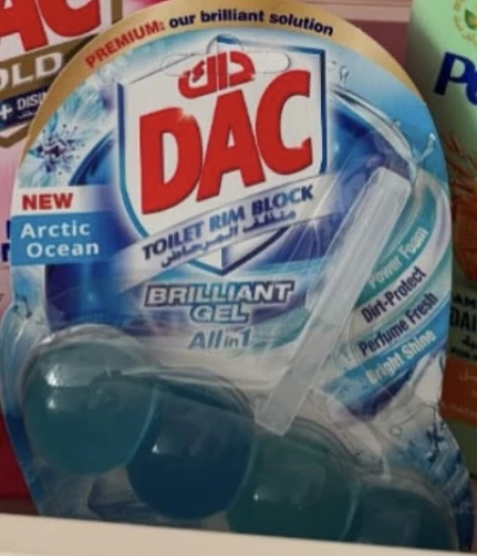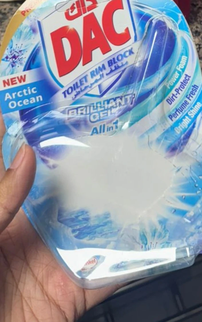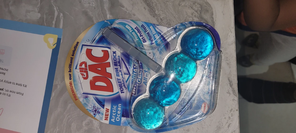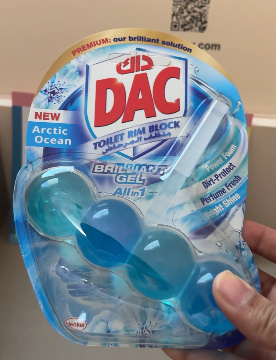 The DAC Toilet Rim Block in New Arctic Ocean is fantastic! The Perfume Fresh scent is refreshing, and the Brilliant Gel formula with Power Foam cleans and shines effortlessly. The Dirt-Protect feature keeps the toilet cleaner for longer, and the Bright Shine gives it a polished look.