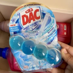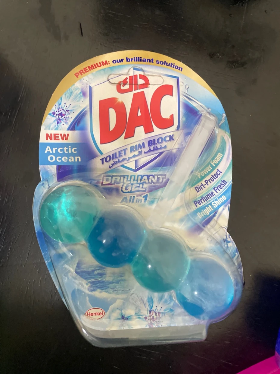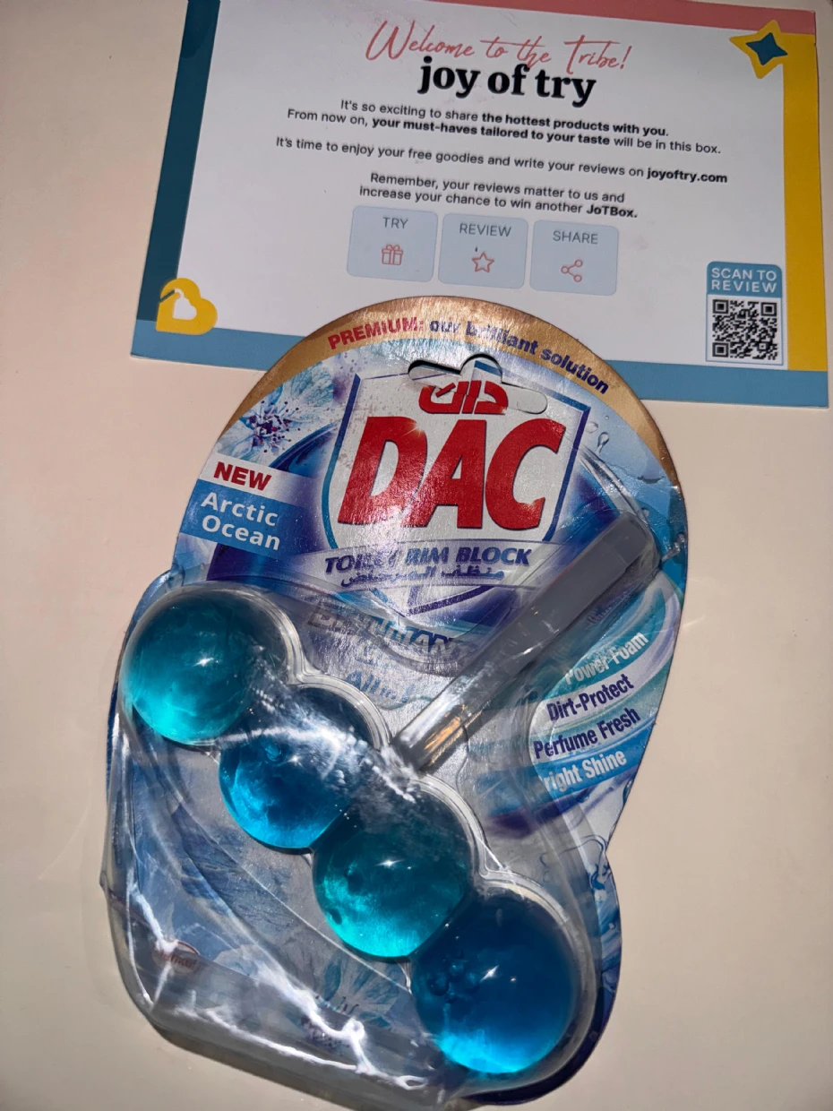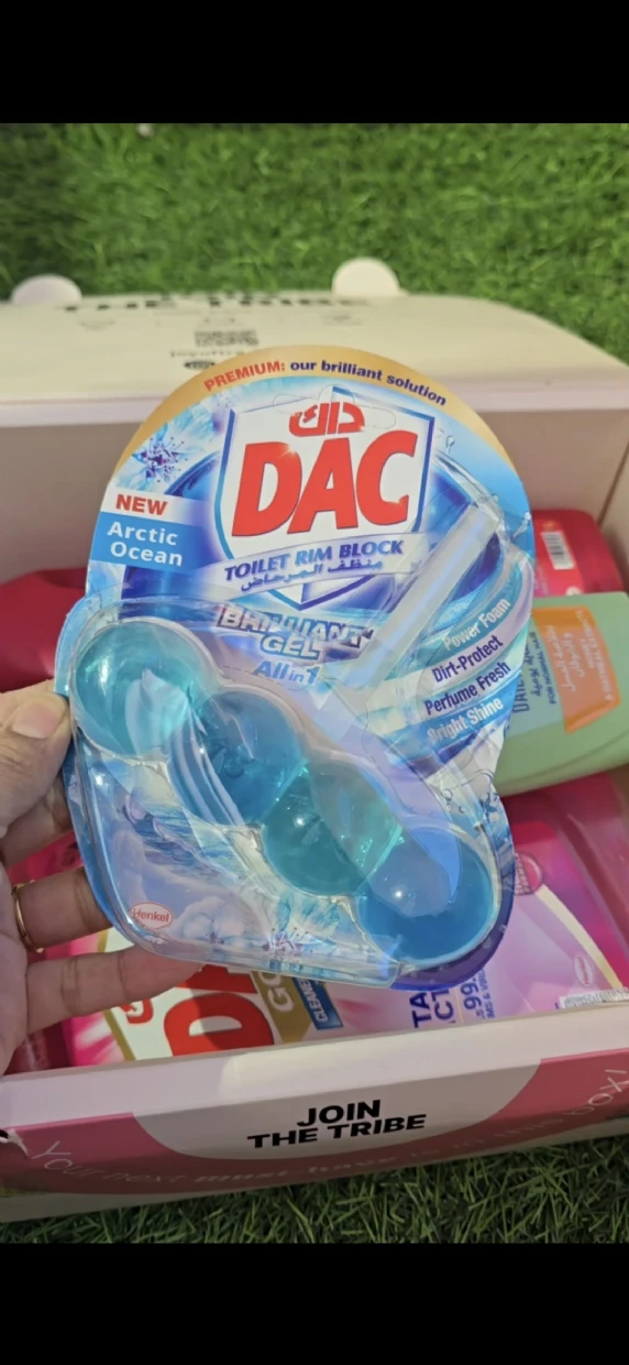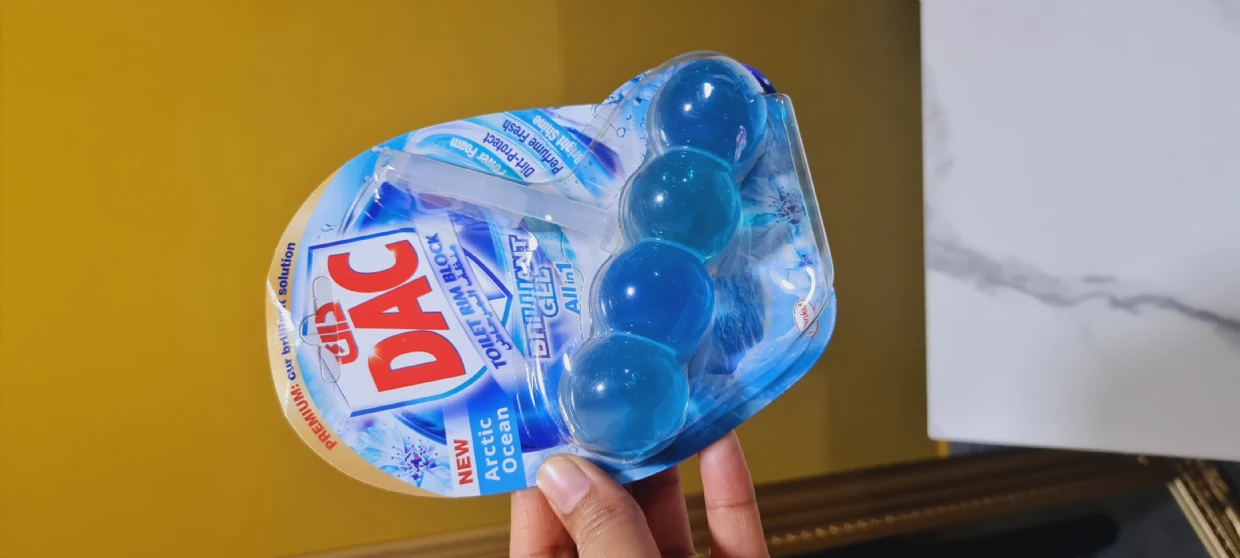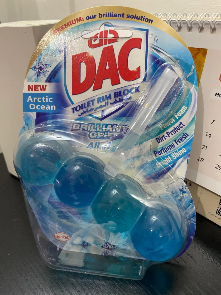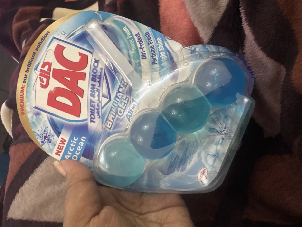 The DAC Toilet Rim Block in New Arctic Ocean is fantastic! The Perfume Fresh scent is refreshing, and the Brilliant Gel formula with Power Foam cleans and shines effortlessly. The Dirt-Protect feature keeps the toilet cleaner for longer, and the Bright Shine gives it a polished look.