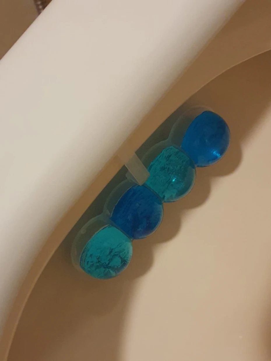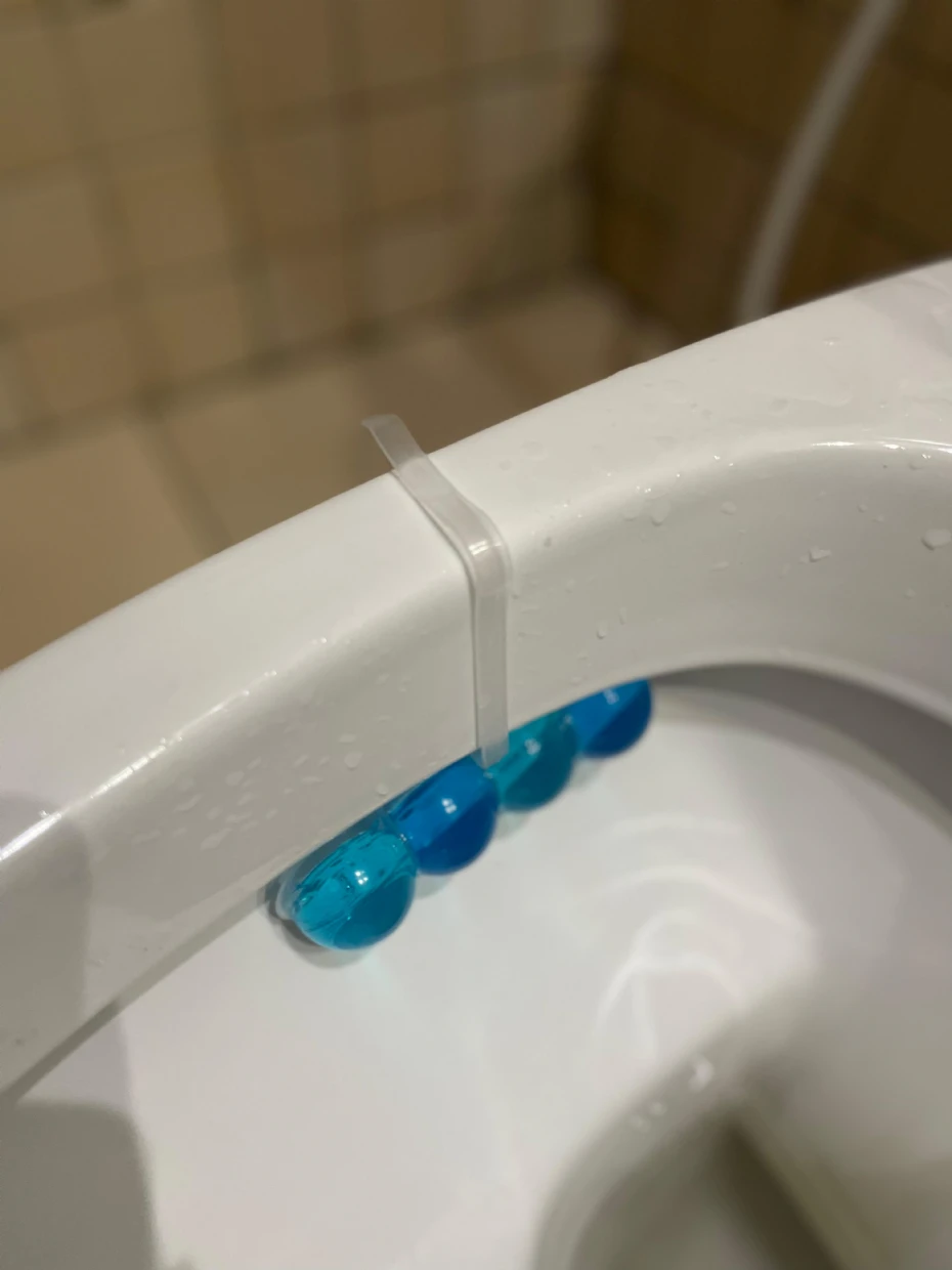 This toilet rim block keeps the toilet fresh and odor-free.