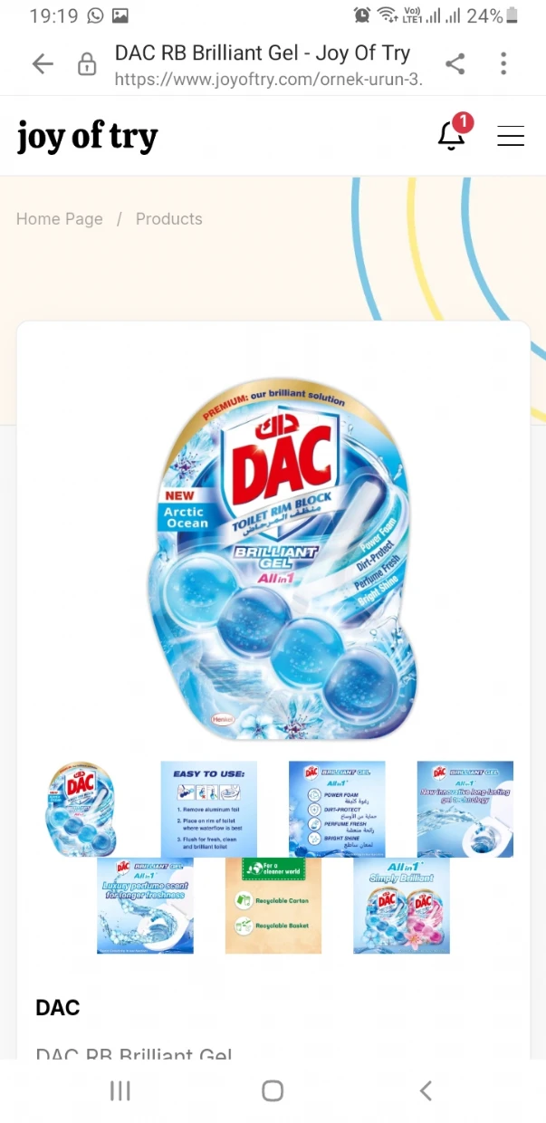 I recently tried the DAC Brilliant Toilet Rim Block in the Arctic Ocean scent and was quite pleased with the results. The gel formula effectively cleans the toilet bowl and leaves a refreshing fragrance after each flush. Its design makes it easy to install under the rim, ensuring consistent cleaning and deodorizing action. However, I do wish the pleasant scent would last more longer. Overall, its a convenient and efficient solution for maintaining toilet hygiene.