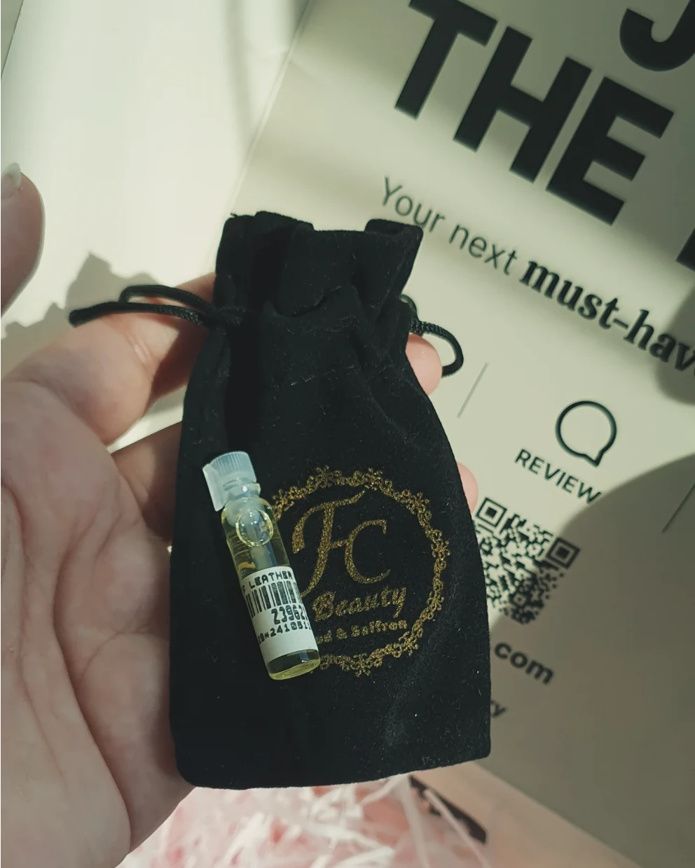 I tried the FC Beauty Oud and Saffron Leather Amber tester, and it smells amazing. It’s warm and a bit smoky with a smooth, rich amber note. It feels really sophisticated, and the fragrance sticks around for a while, which is great. If you like earthy, cozy scents, this one’s definitely worth checking out!