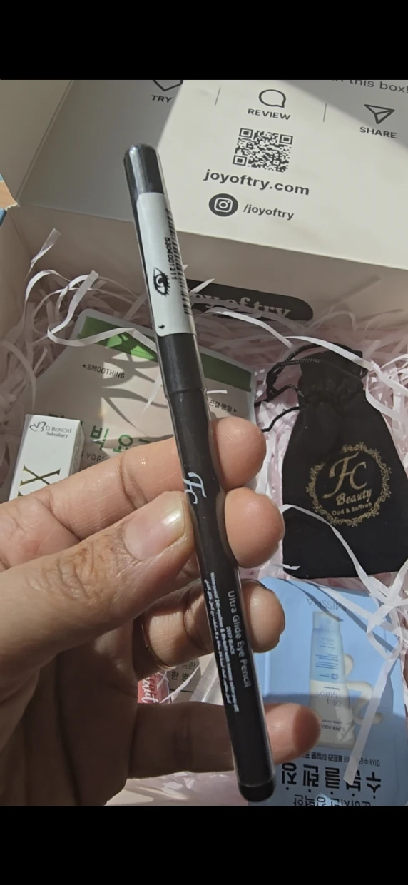 The FC Beauty Ultra Glide Eye Pencil is smooth, highly pigmented, and easy to apply. It lasts all day without smudging and is perfect for both sharp lines and smoky looks. Highly recommend!
