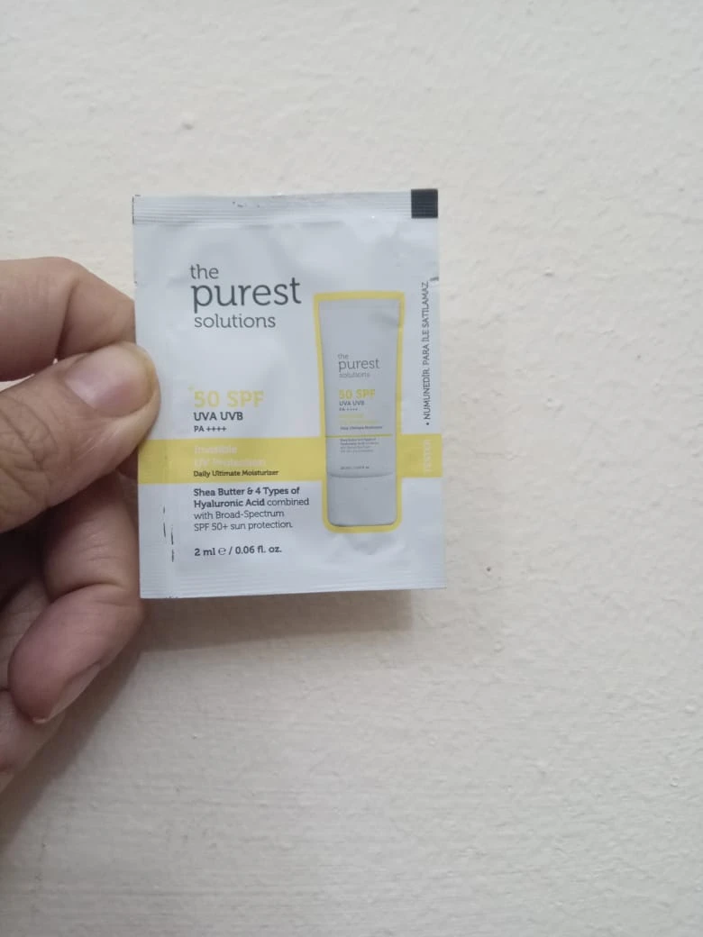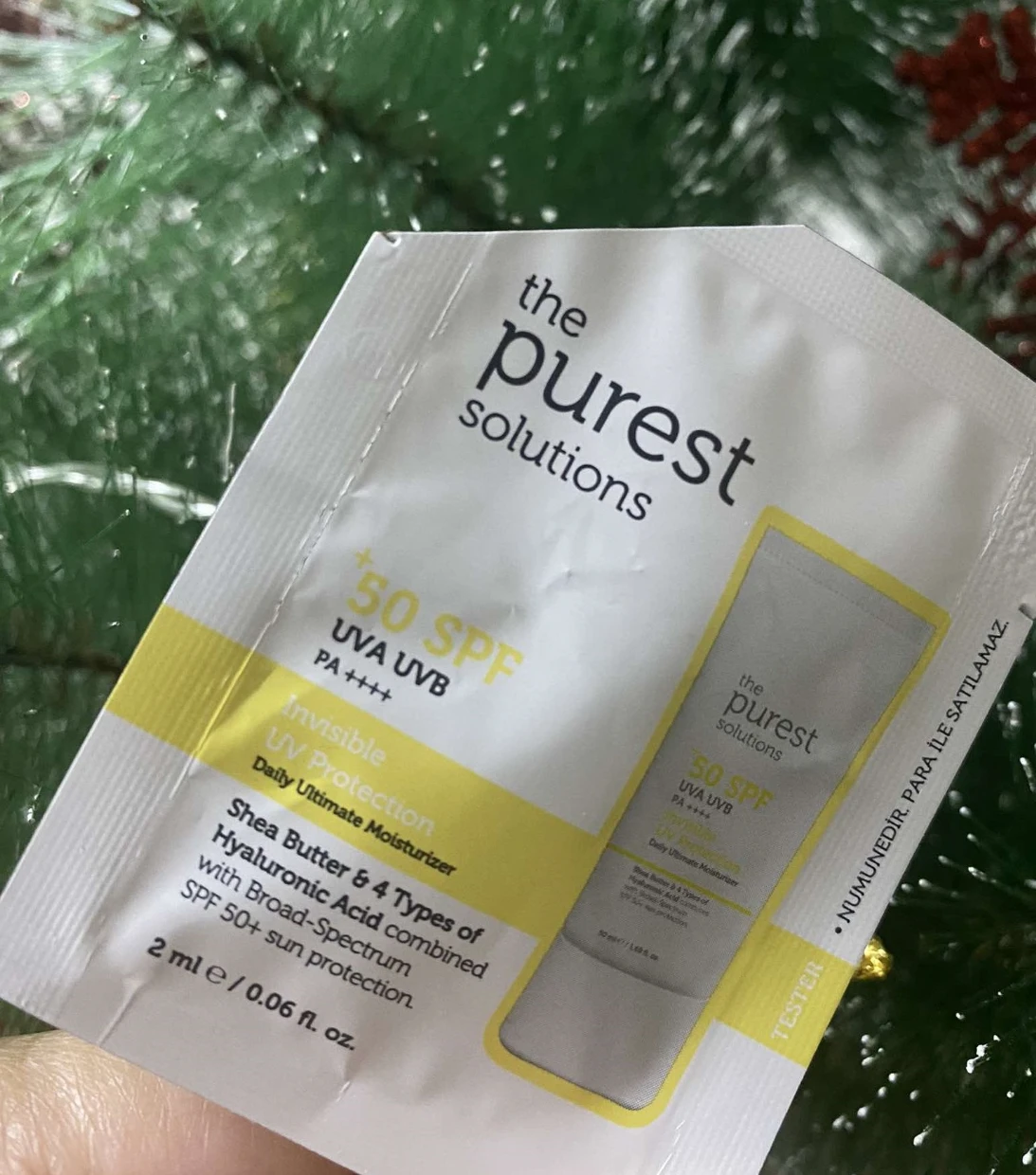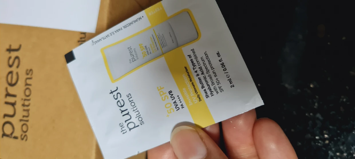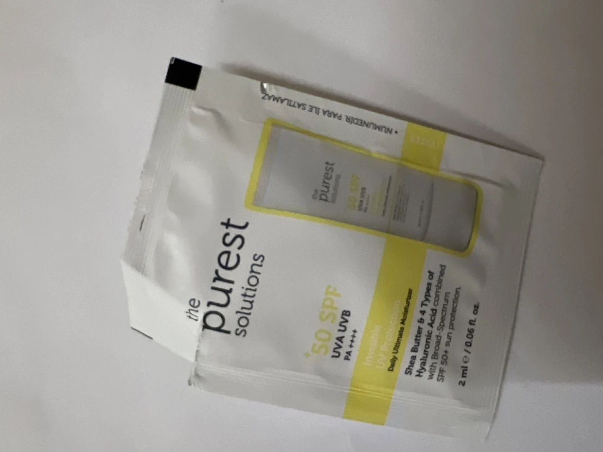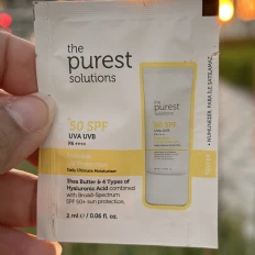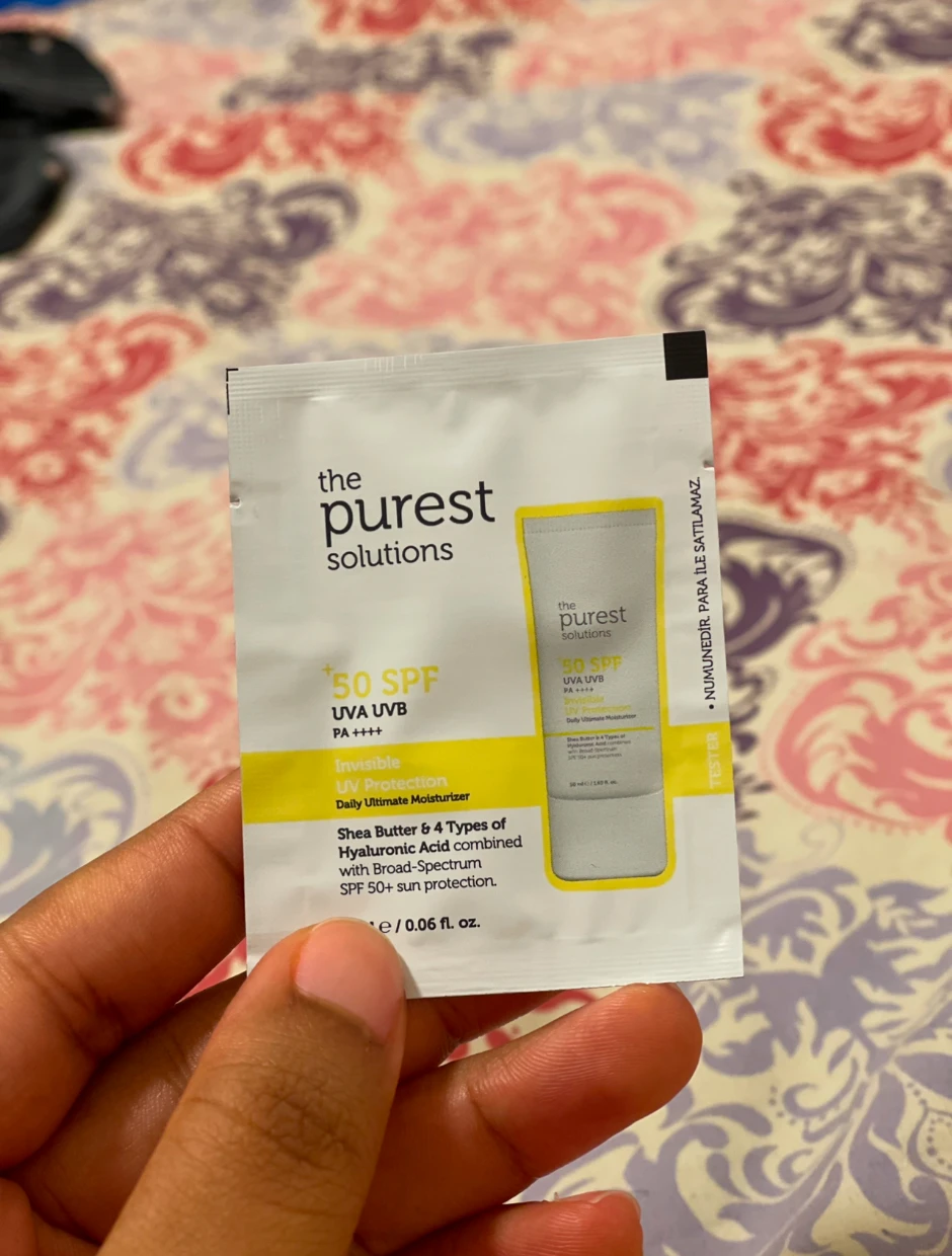 I am pretty much satisfied with ‘The Purest Solutions’ Invisible UV protection Sunscreen that has Shea Butter & 4 types of Hyaluronic Acid combined with broad spectrum SPF 50+. Formula absorbs into the skin very easily with no traces of white patches or oily texture. I would definitely recommend this for any skin type👍🤩
