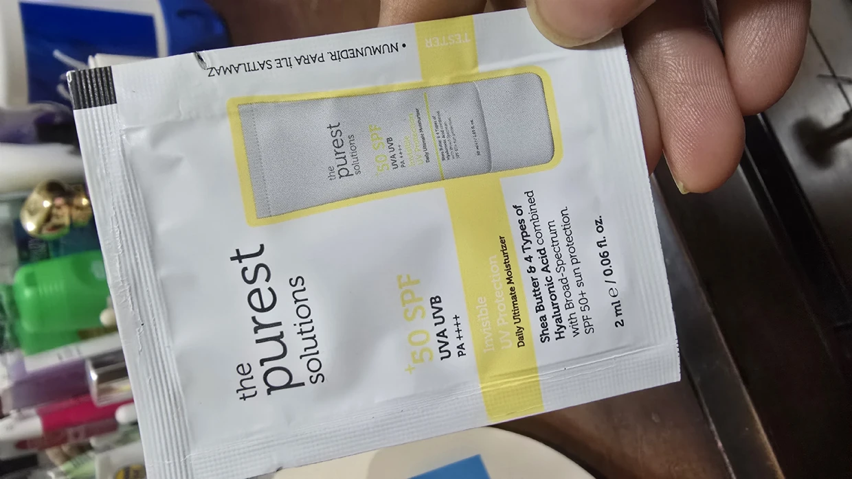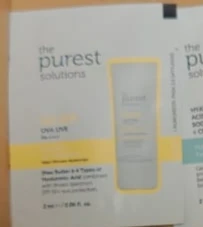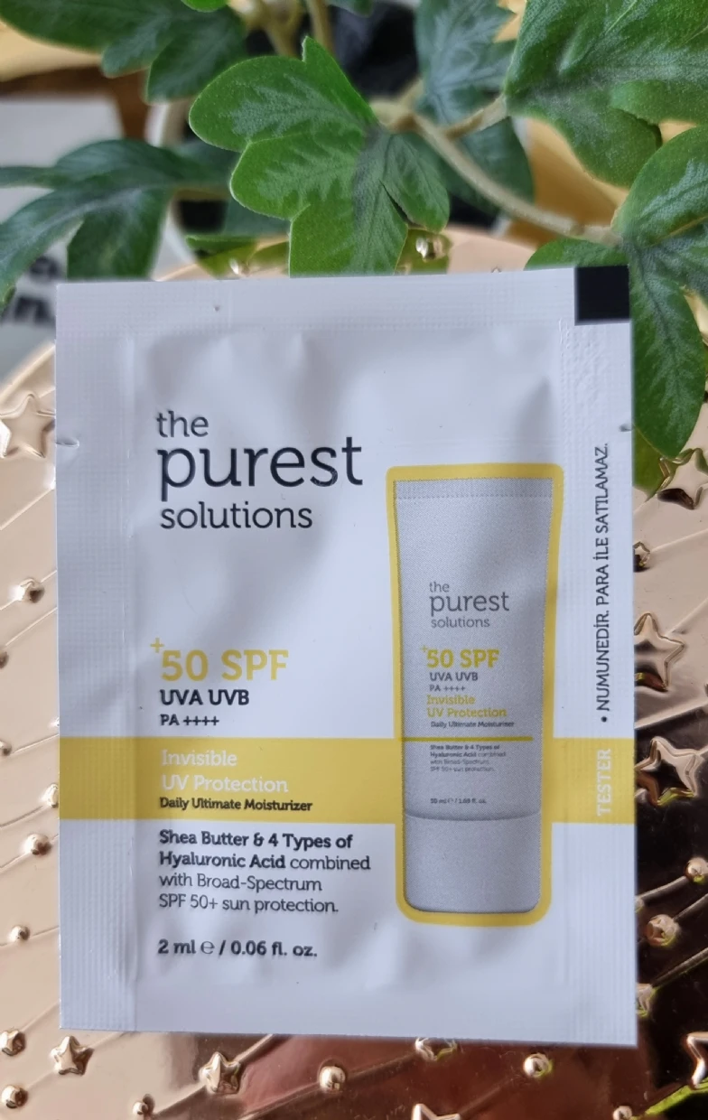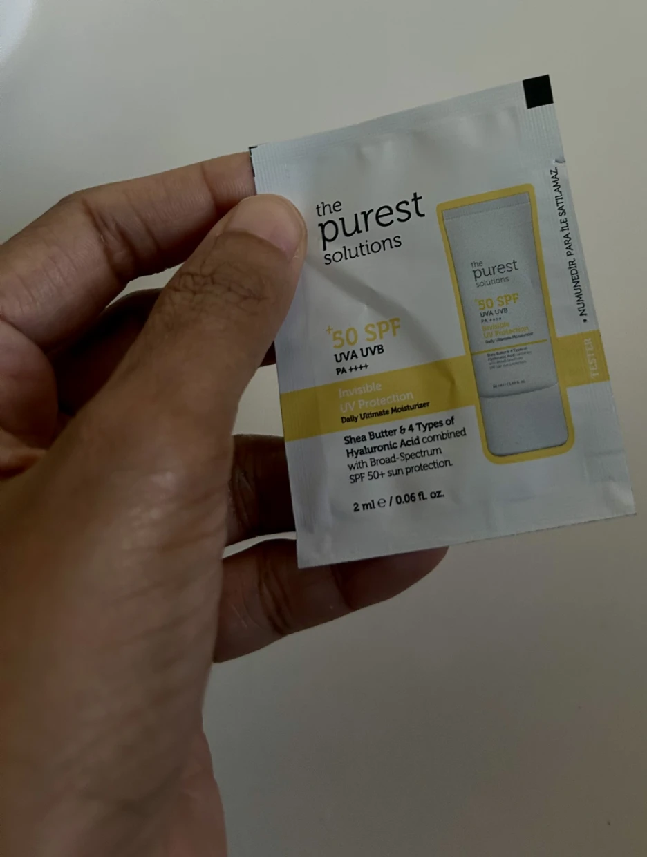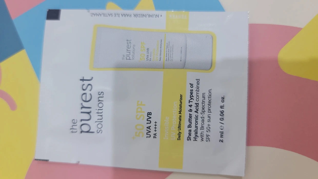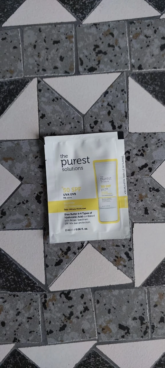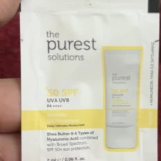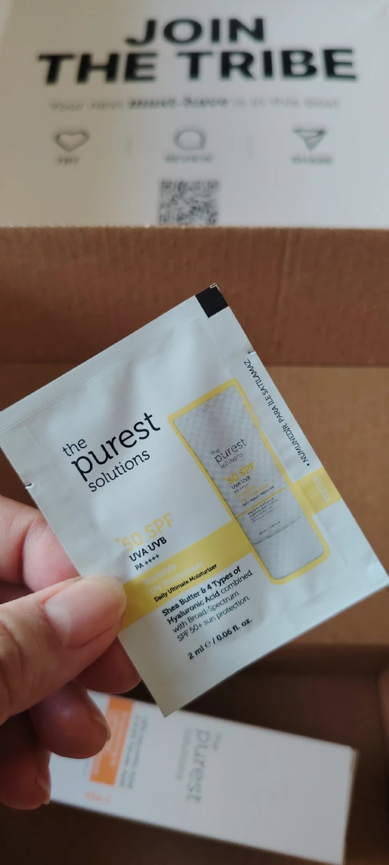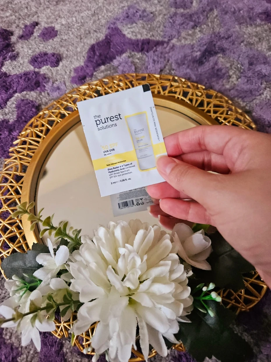 I am pretty much satisfied with ‘The Purest Solutions’ Invisible UV protection Sunscreen that has Shea Butter & 4 types of Hyaluronic Acid combined with broad spectrum SPF 50+. Formula absorbs into the skin very easily with no traces of white patches or oily texture. I would definitely recommend this for any skin type👍🤩