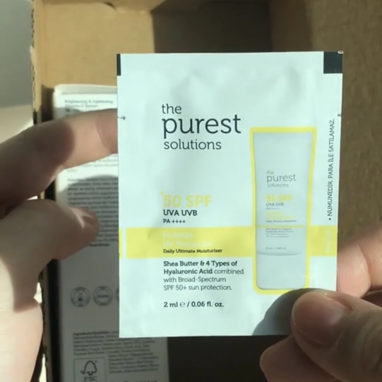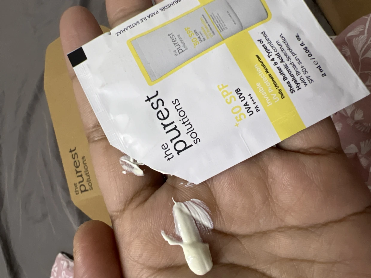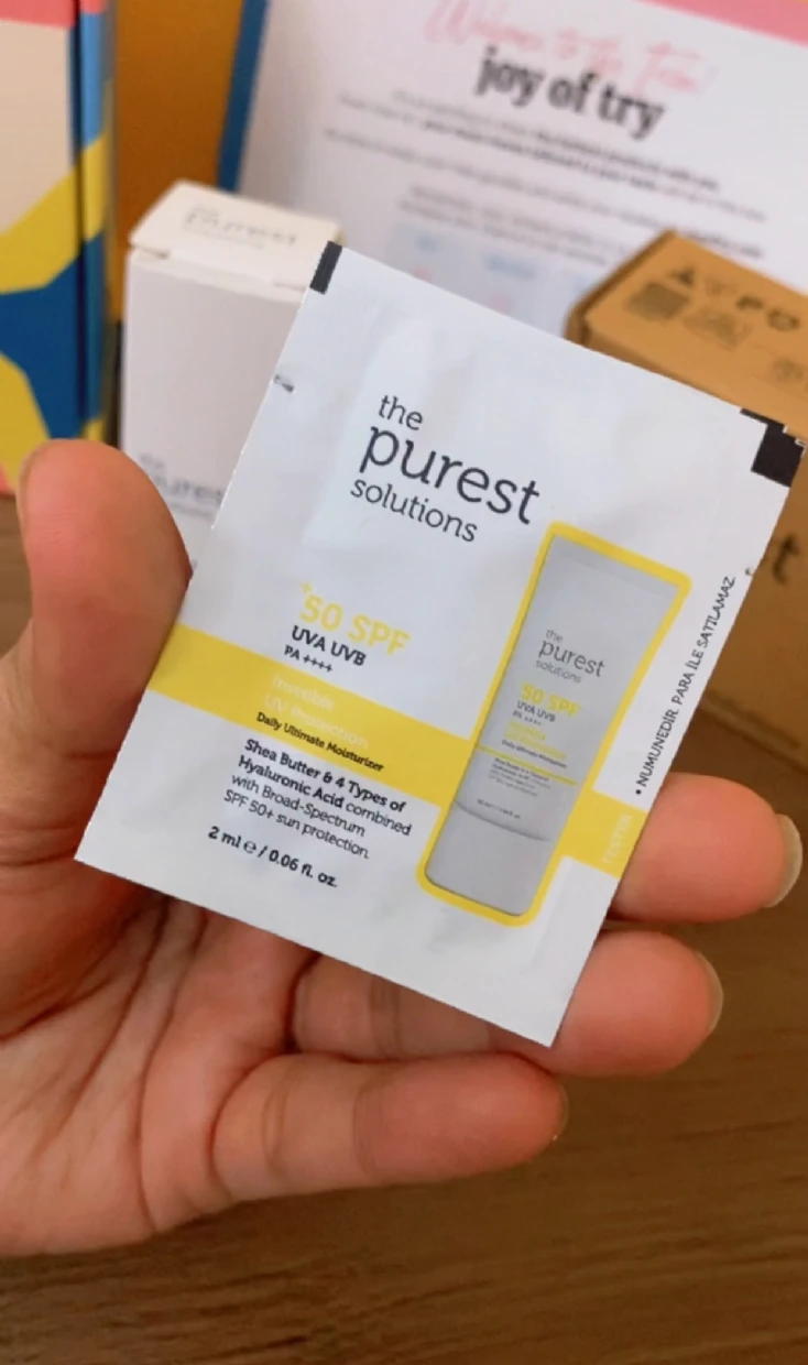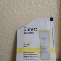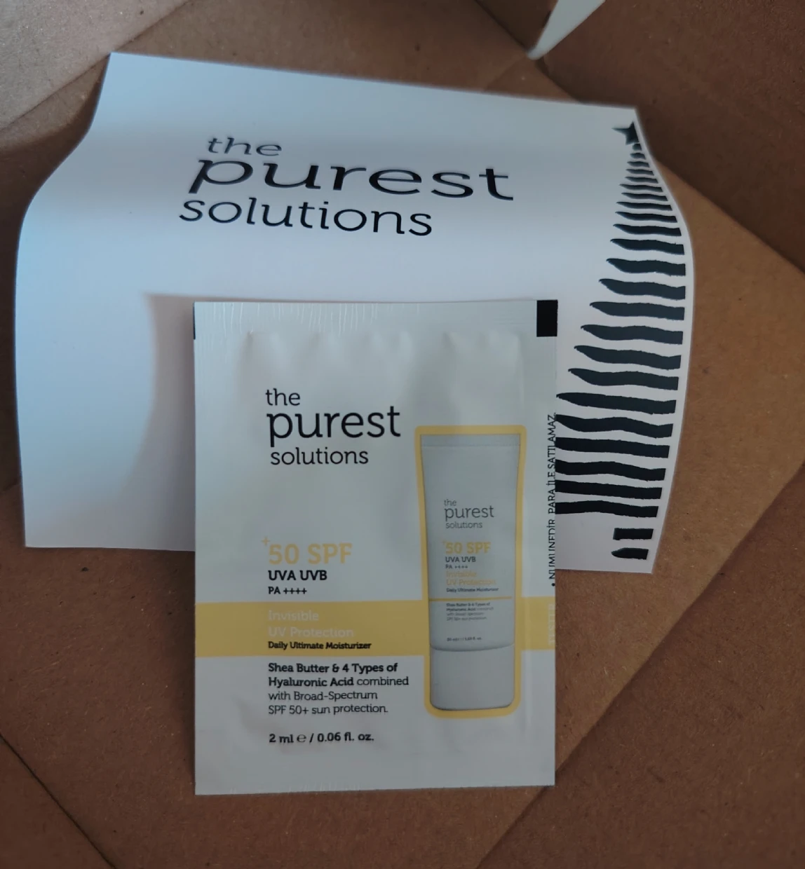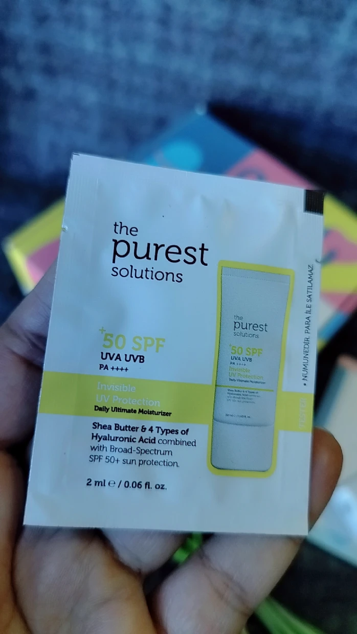 I am pretty much satisfied with ‘The Purest Solutions’ Invisible UV protection Sunscreen that has Shea Butter & 4 types of Hyaluronic Acid combined with broad spectrum SPF 50+. Formula absorbs into the skin very easily with no traces of white patches or oily texture. I would definitely recommend this for any skin type👍🤩