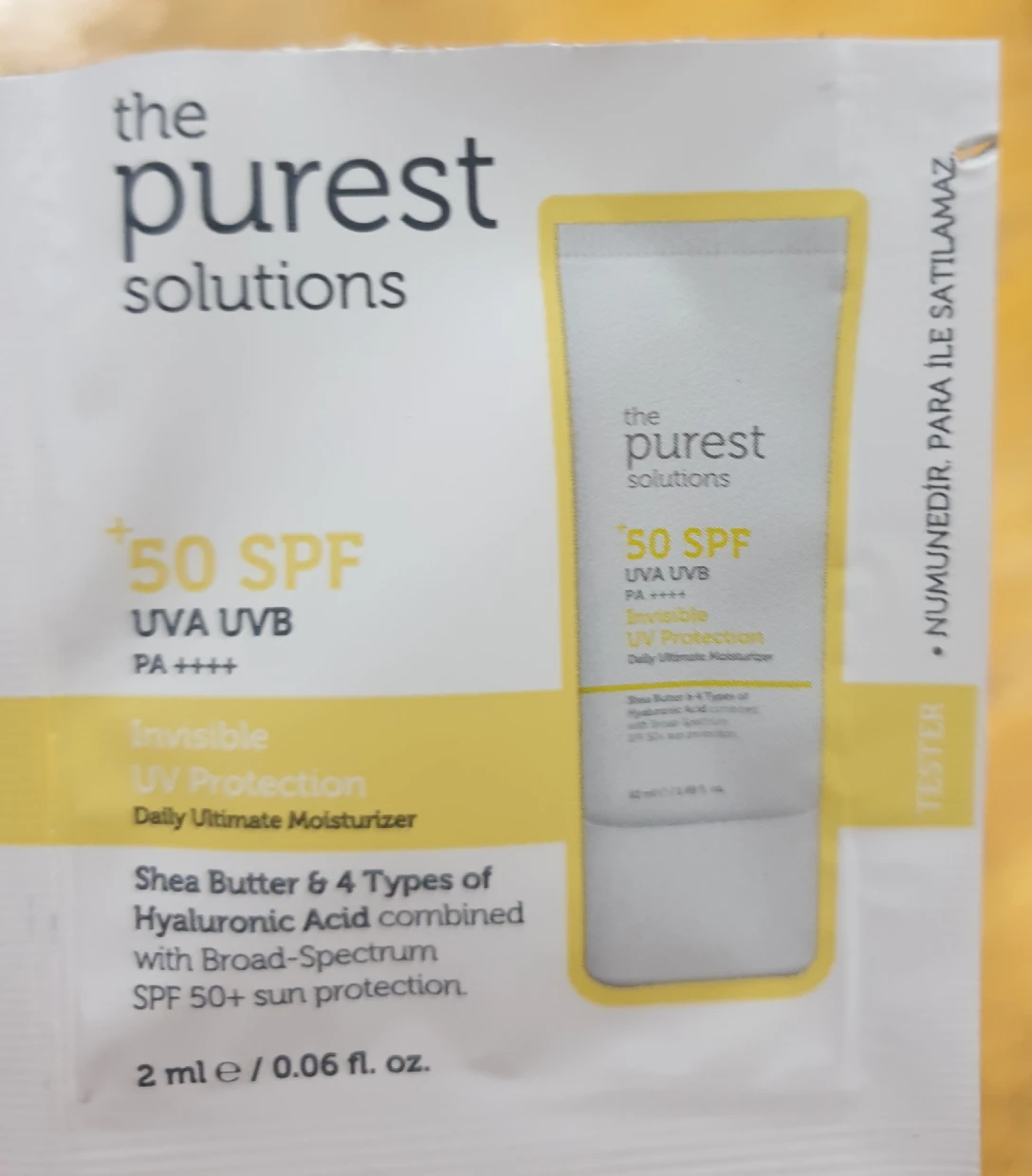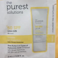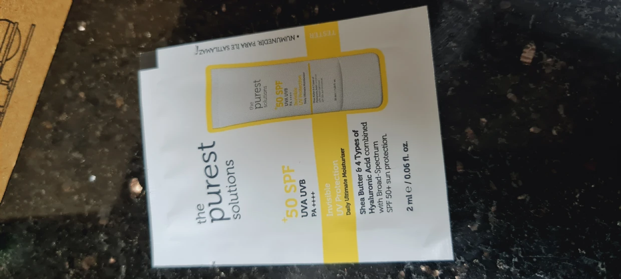 Im so impressed with The Purest Solutions Invisible UV Protection Sunscreen! It provides excellent protection against harmful UV rays with SPF 50+, while also hydrating my skin. The lightweight, non-greasy texture makes it perfect for daily use. Ive noticed a significant difference in my skins health and appearance since using this sunscreen. Highly recommended for anyone looking for a reliable and moisturizing sunscreen
