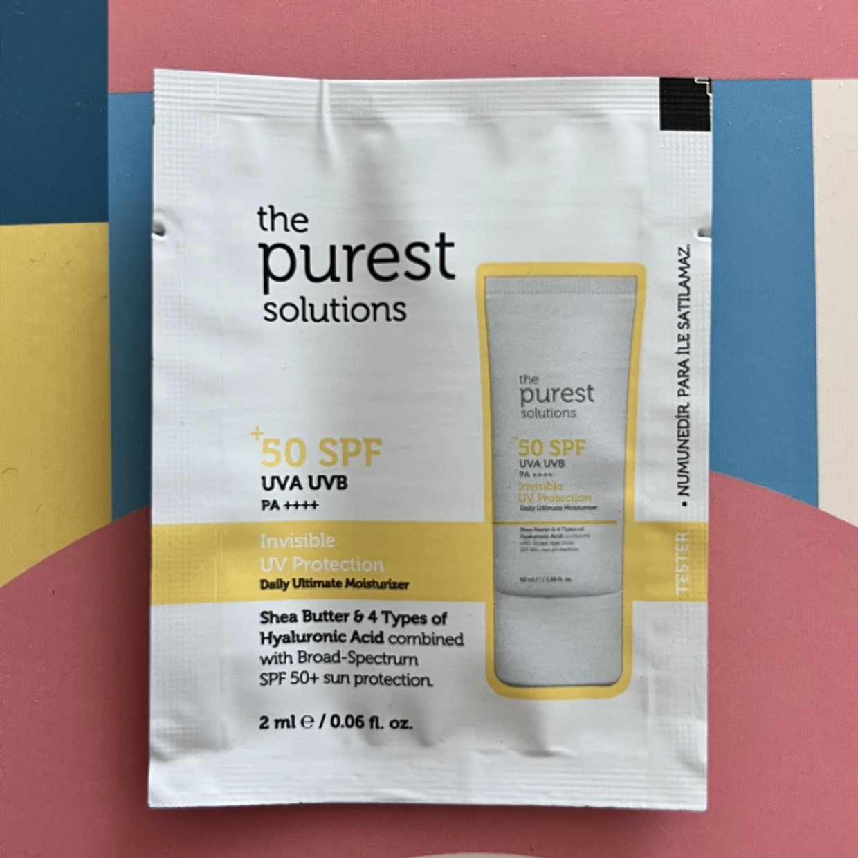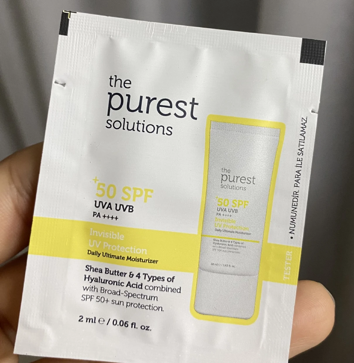 I’ve tried the Purest Solutions Invisible UV Protection for the past few days, and it’s been great. It’s lightweight, non-greasy, and absorbs quickly into my skin without leaving any white residue. My skin feels protected without feeling heavy or clogged. I appreciate how it blends in so well under makeup too.