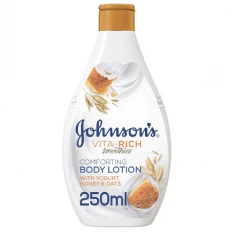 If youre looking for a body lotion that combines indulgent nourishment with a comforting scent, JOHNSONS VITA-RICH Comforting Body Lotion is an excellent choice. Enriched with yoghurt concentrate, honey, and oats, this lotion offers deep hydration while being gentle on the skin. The fast-absorbing formula means no greasy residue, making it perfect for daily use.