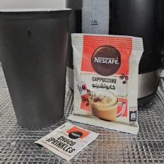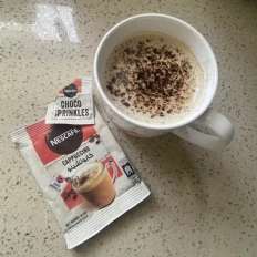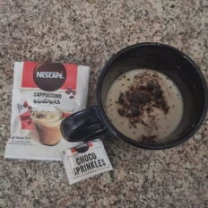 Im generally not a fan of cappuccino, but this Nescafe Cappuccino sachet was decent. It offers a convenient and quick way to prepare a cappuccino, and the choco sprinkles add a nice touch. The flavor was smooth, though it didnt quite match the depth of a freshly brewed cappuccino. Overall, its a good option for a quick and easy coffee fix.