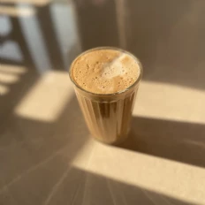 Creamy with a frothy top, offering a balanced coffee flavor. A slightly sweeter taste.