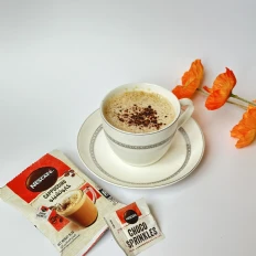 Nescafé Cappuccino with Choco Sprinkles offers a delightful café experience in the comfort of your home. The creamy, frothy texture is just what youd expect from a cappuccino, and the addition of chocolate sprinkles adds a fun and delicious twist to the traditional coffee flavor.