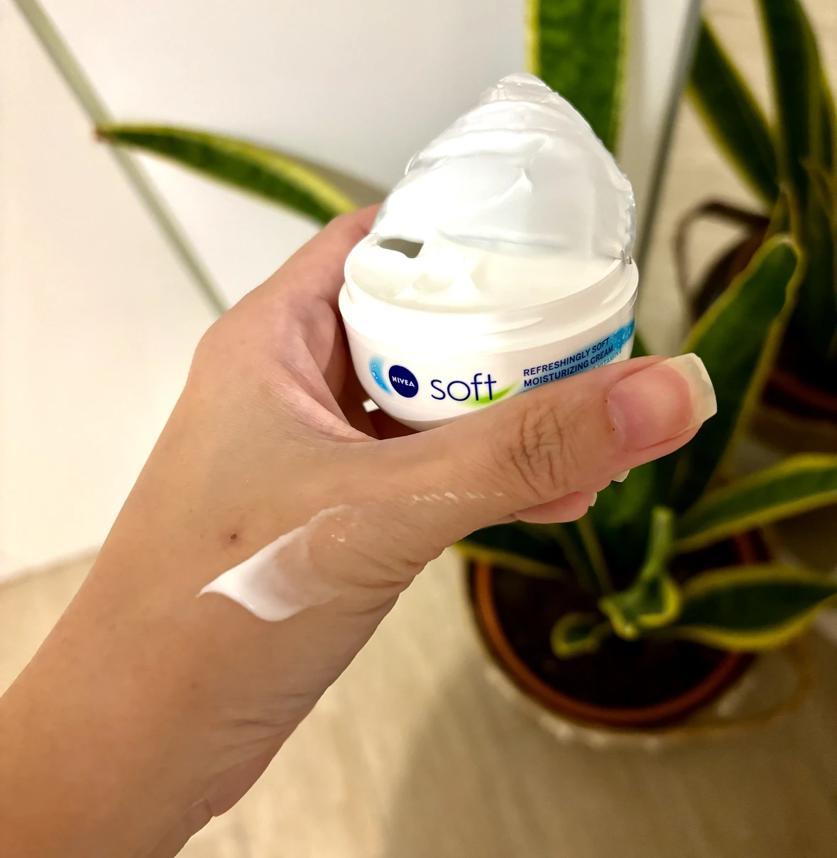 This Nivea Soft is a holy grail. The texture is creamy but once applied to skin is absorbs. Most of all doesnt have any heaviness feeling.