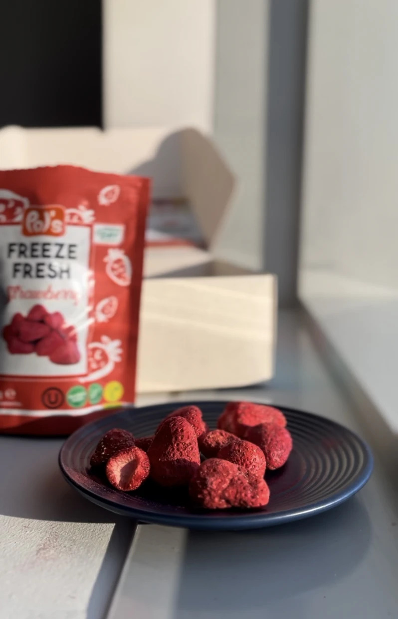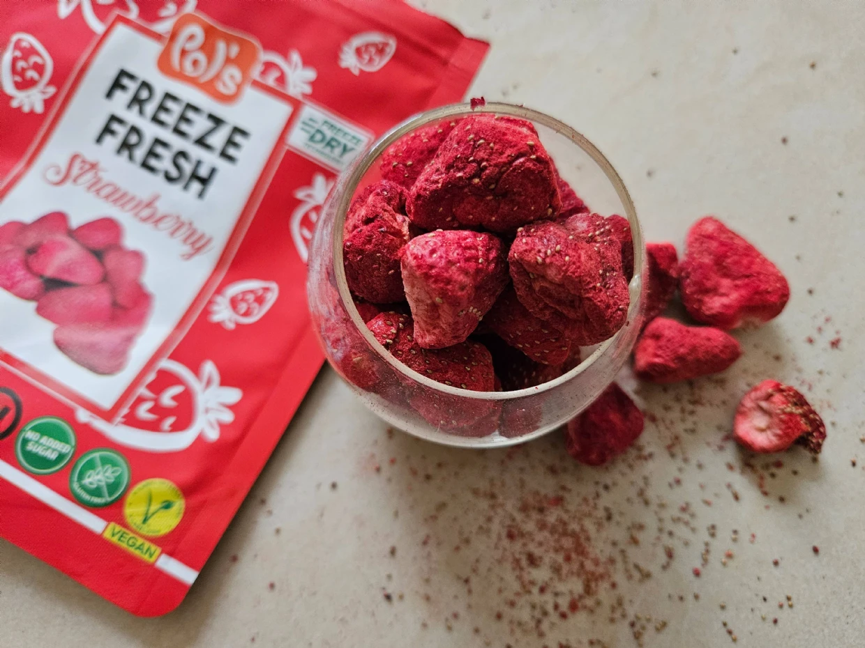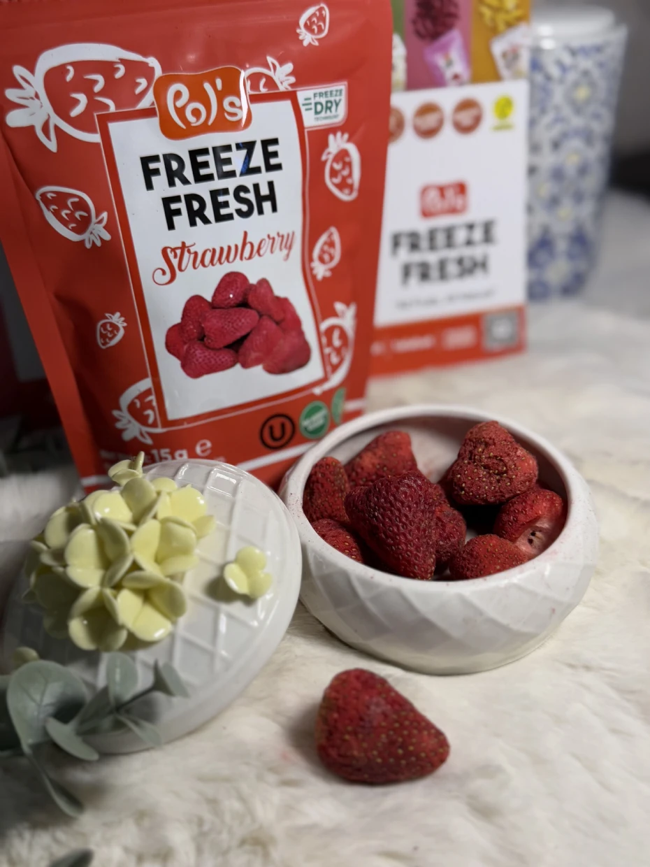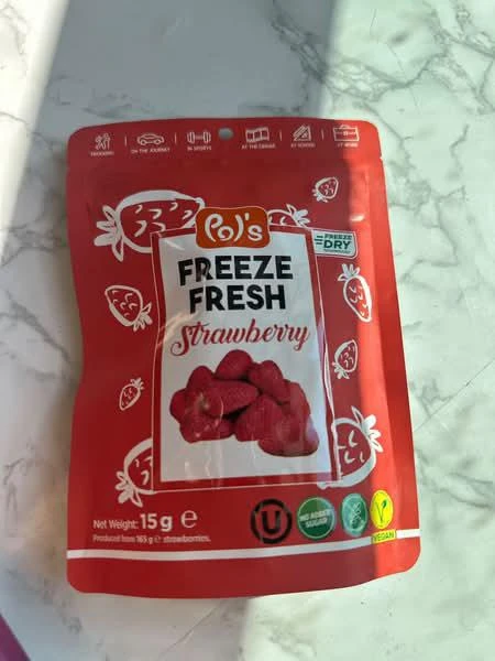 Whether youre looking for a quick snack, a topping for oatmeal or yoghurt, or a healthy addition to your lunchbox, Pols freeze-dried strawberries are a great choice.