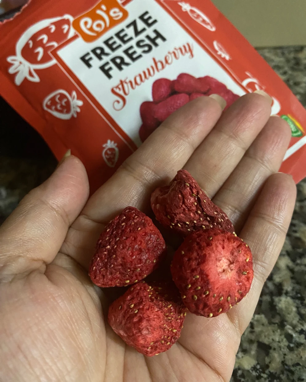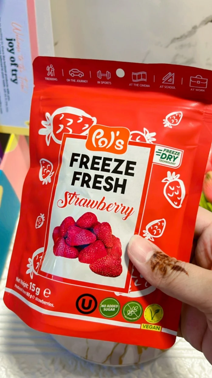 I loved pols fresh freeze dried strawberry very much. It’s healthy & natural snacks. My baby loved it as snack 😍