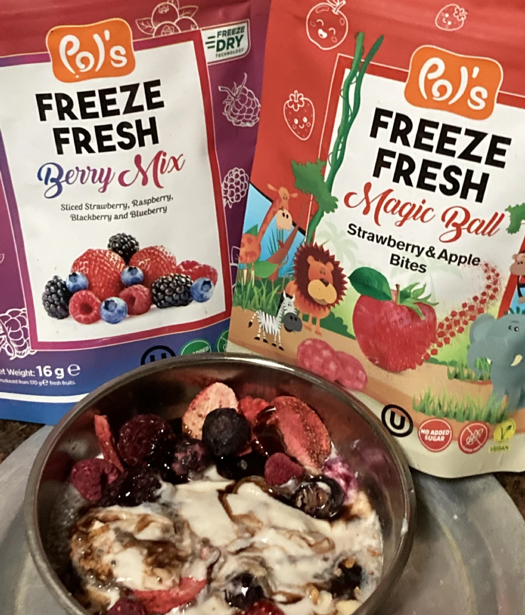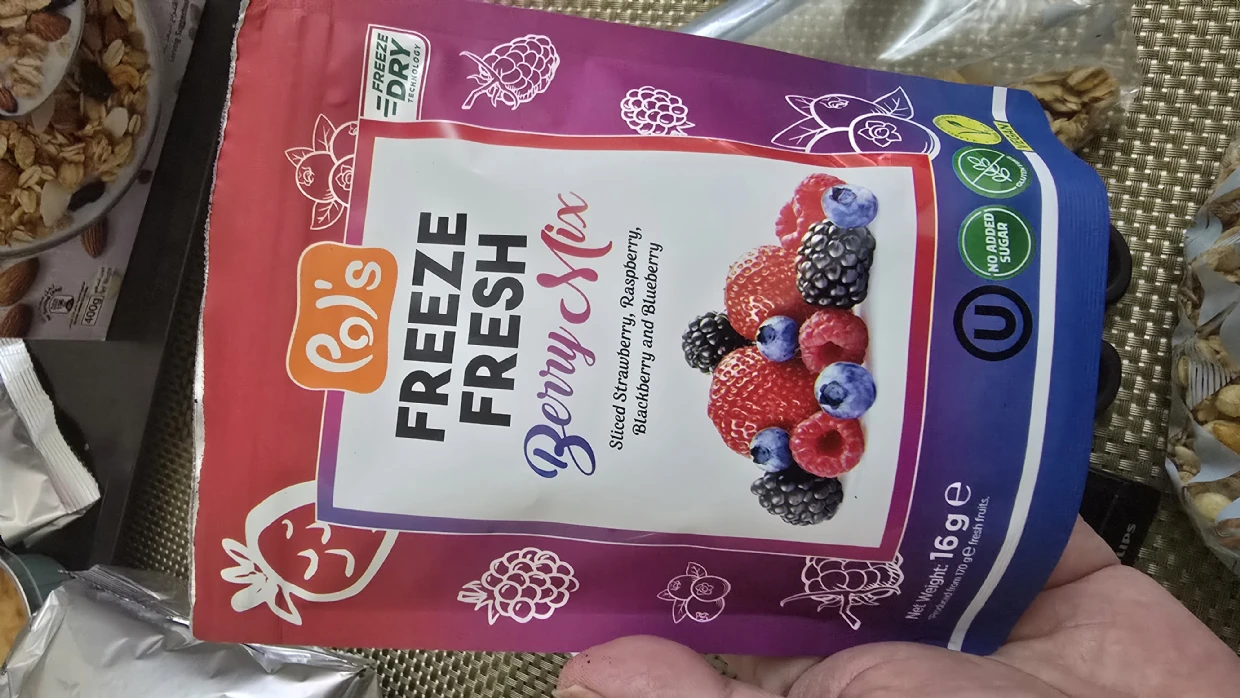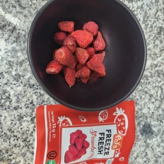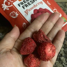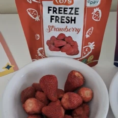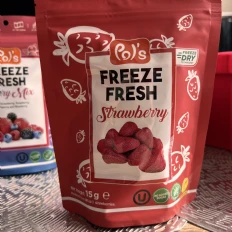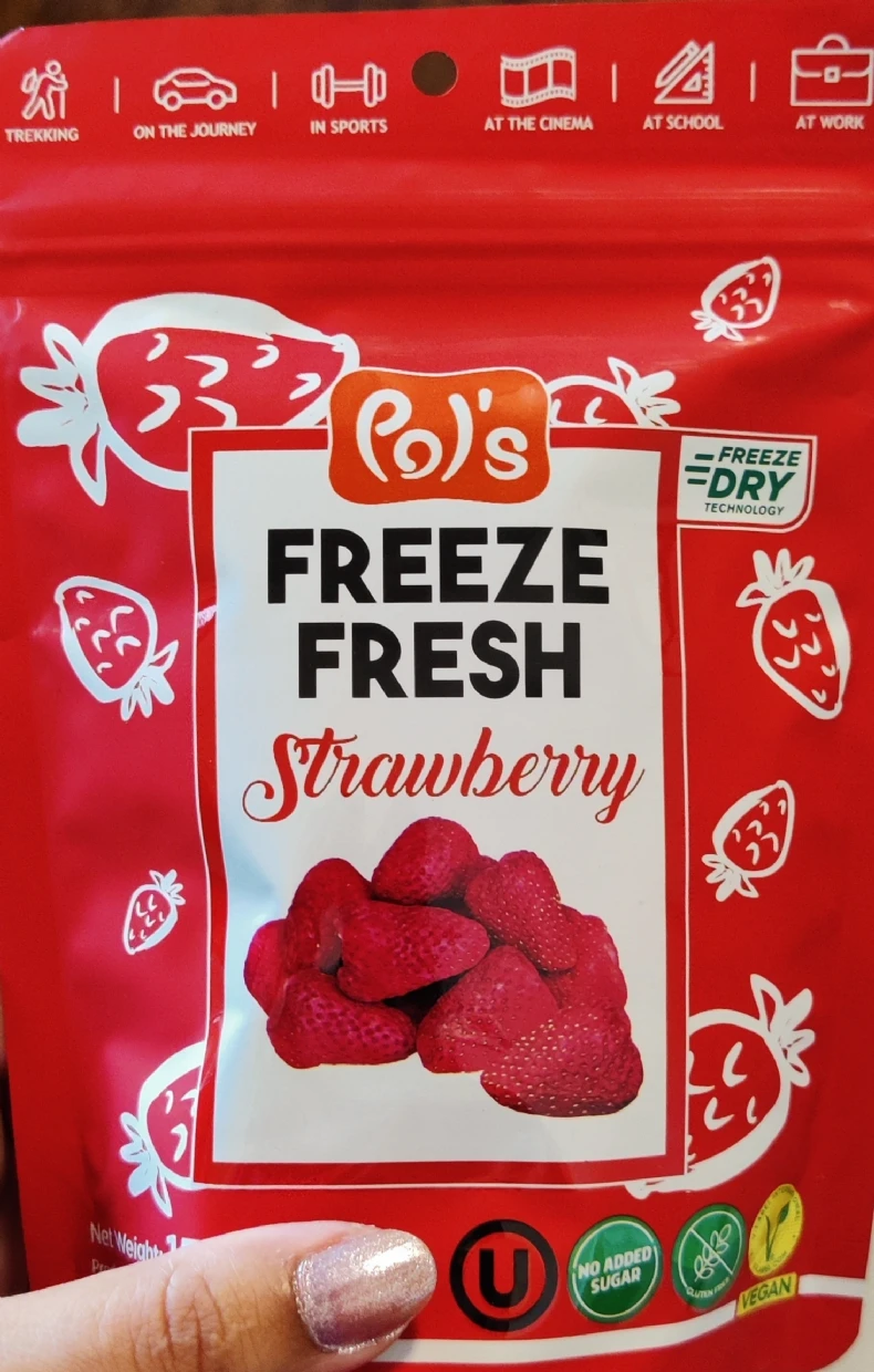 My niece and I love Pols Freeze Fresh Freeze-Dried Strawberries. I put it on my pancakes or yogurt in the morning for added taste and benefits, and I love it. I will buy it again.