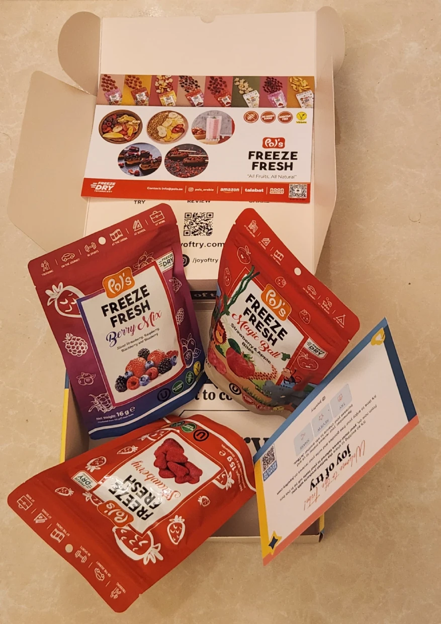 This product is a game-changer! As a Gulf resident who travels frequently, carrying fresh fruits isn’t always an option. But with this, I can enjoy real fruit anytime without worrying about preservatives or artificial flavors. Just sprinkle it on yogurt, and you have the perfect fruit yogurt in seconds! It also made the best açaí bowl, and it’s great for snacking too. I loved it so much that I’ve already stocked up for my travels next week My kids are obsessed with it