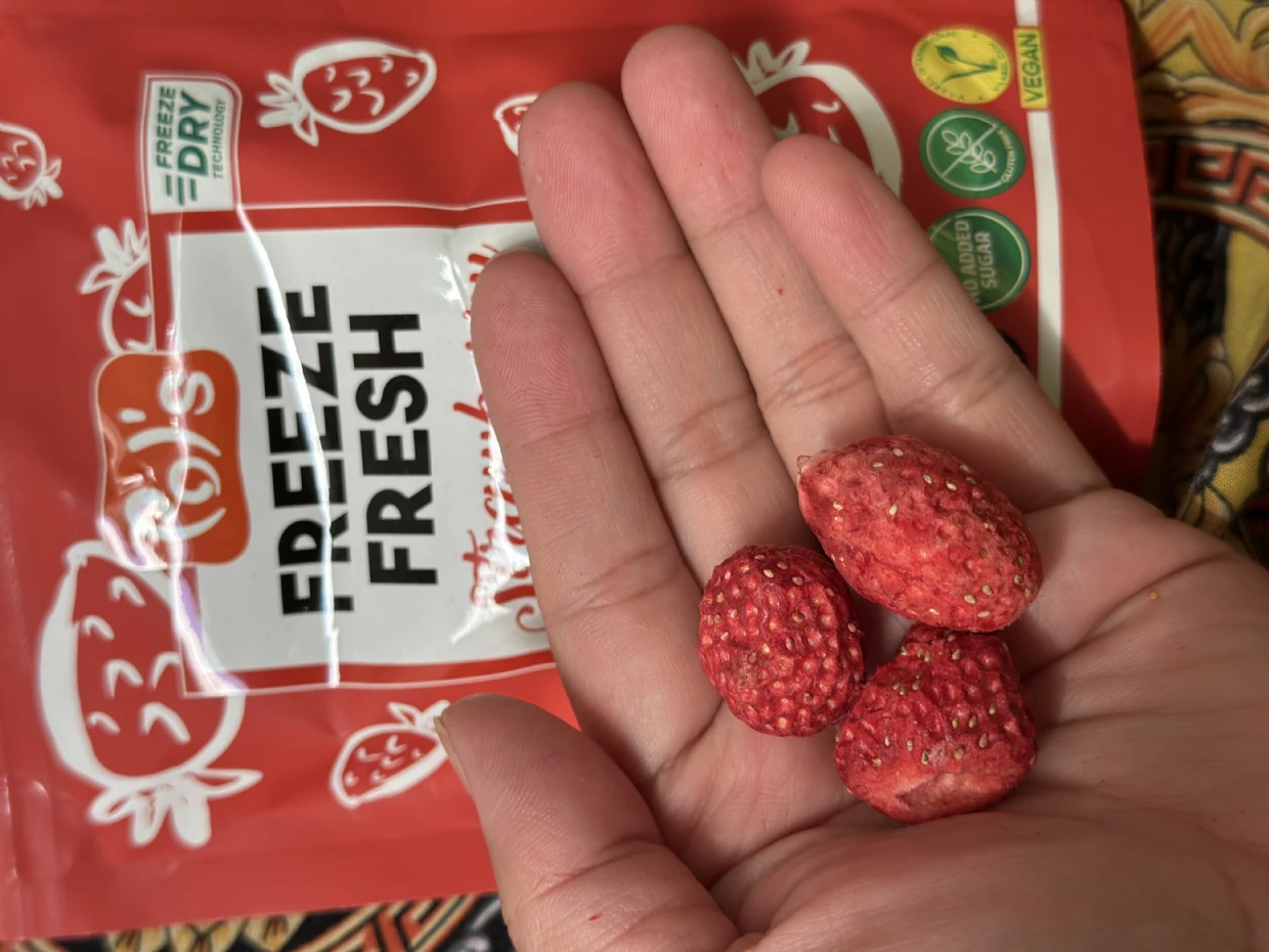 I bought Pols Freeze Fresh Freeze-Dried Strawberries, and they’re pretty good! The flavor is super sweet and intense, and they have that crunchy texture that’s kind of addicting. Perfect for snacking or tossing into smoothies. They’re not as sweet as fresh strawberries, but still tasty and super convenient. Definitely a fun treat!