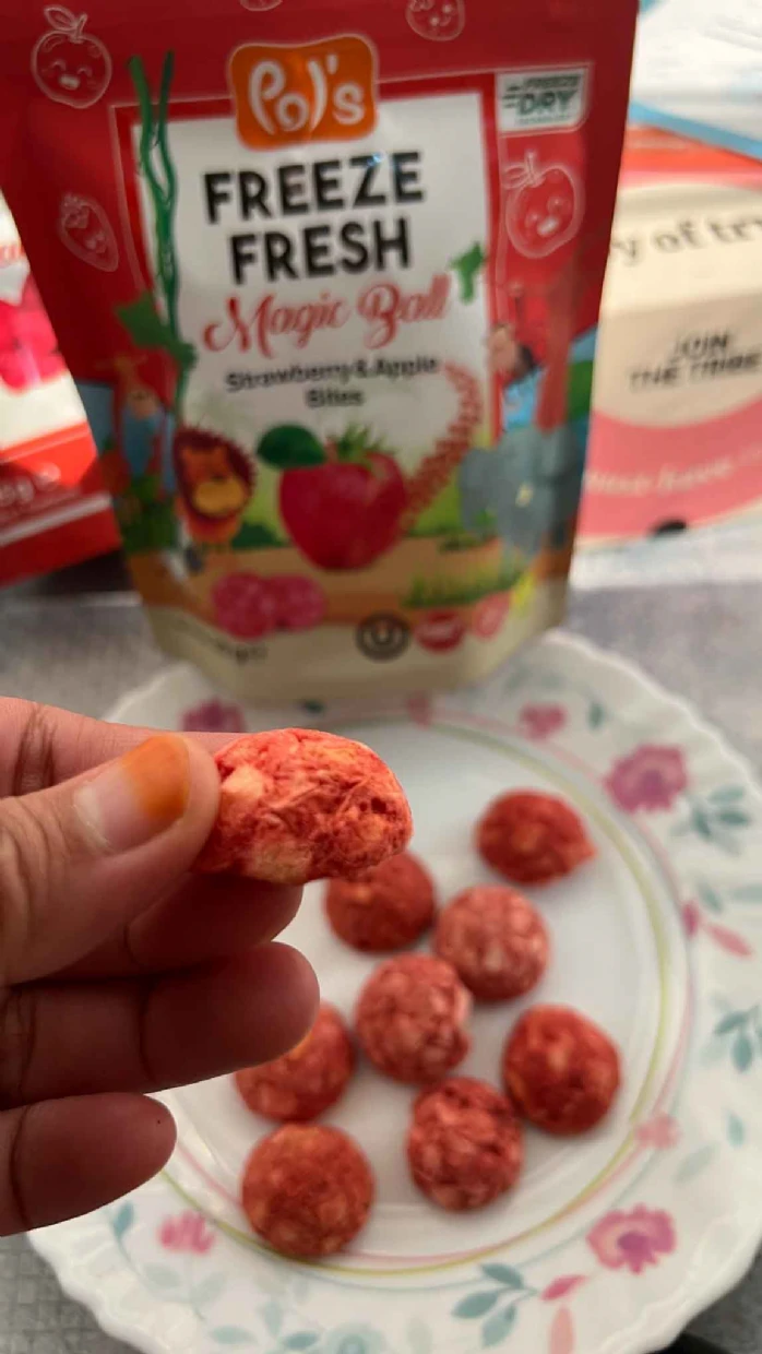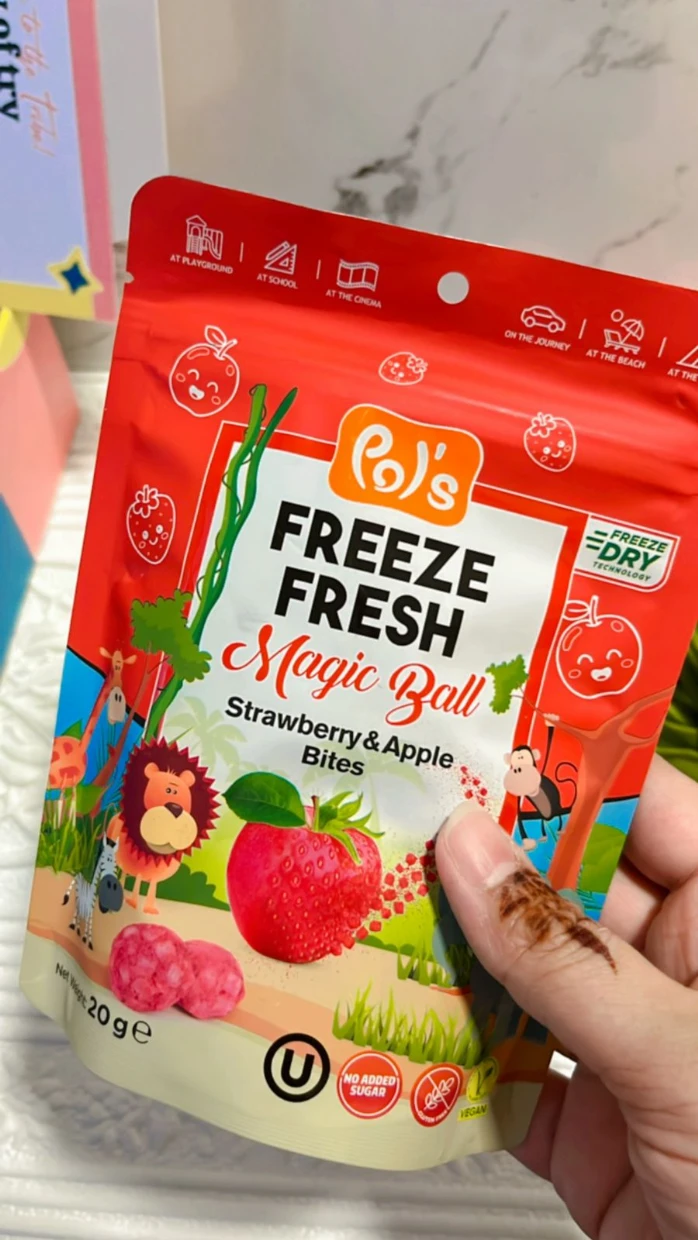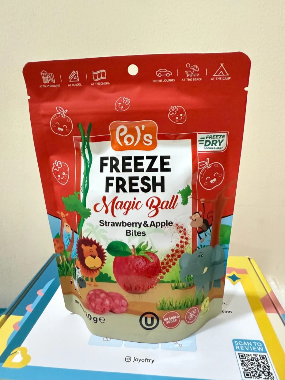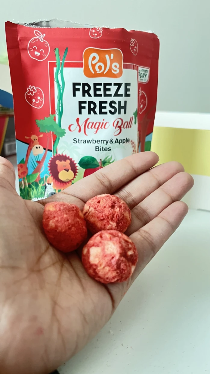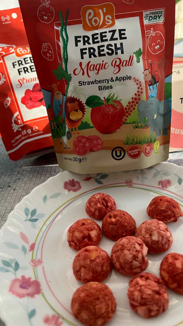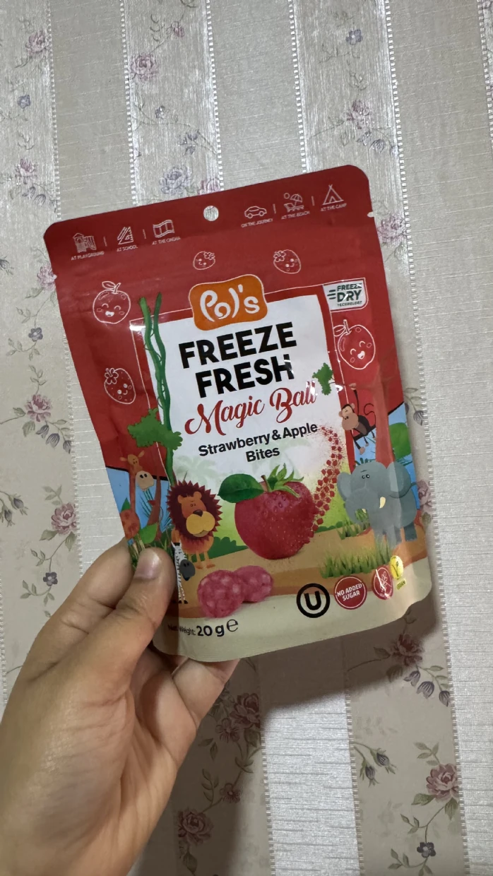 Tried these Pols Freeze Fresh Magic Ball Freeze-Dried Strawberry & Apple Bites, and they were an instant hit—especially with my little one! 💕 Ruhan absolutely loved the light, crispy texture and the burst of fruity flavors in every bite. It’s a perfect balance of sweet strawberries and refreshing apples, making snacking both fun and healthy.