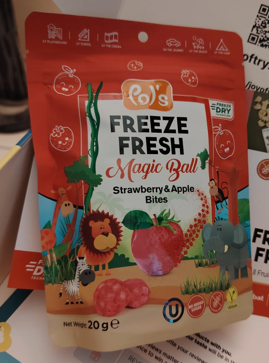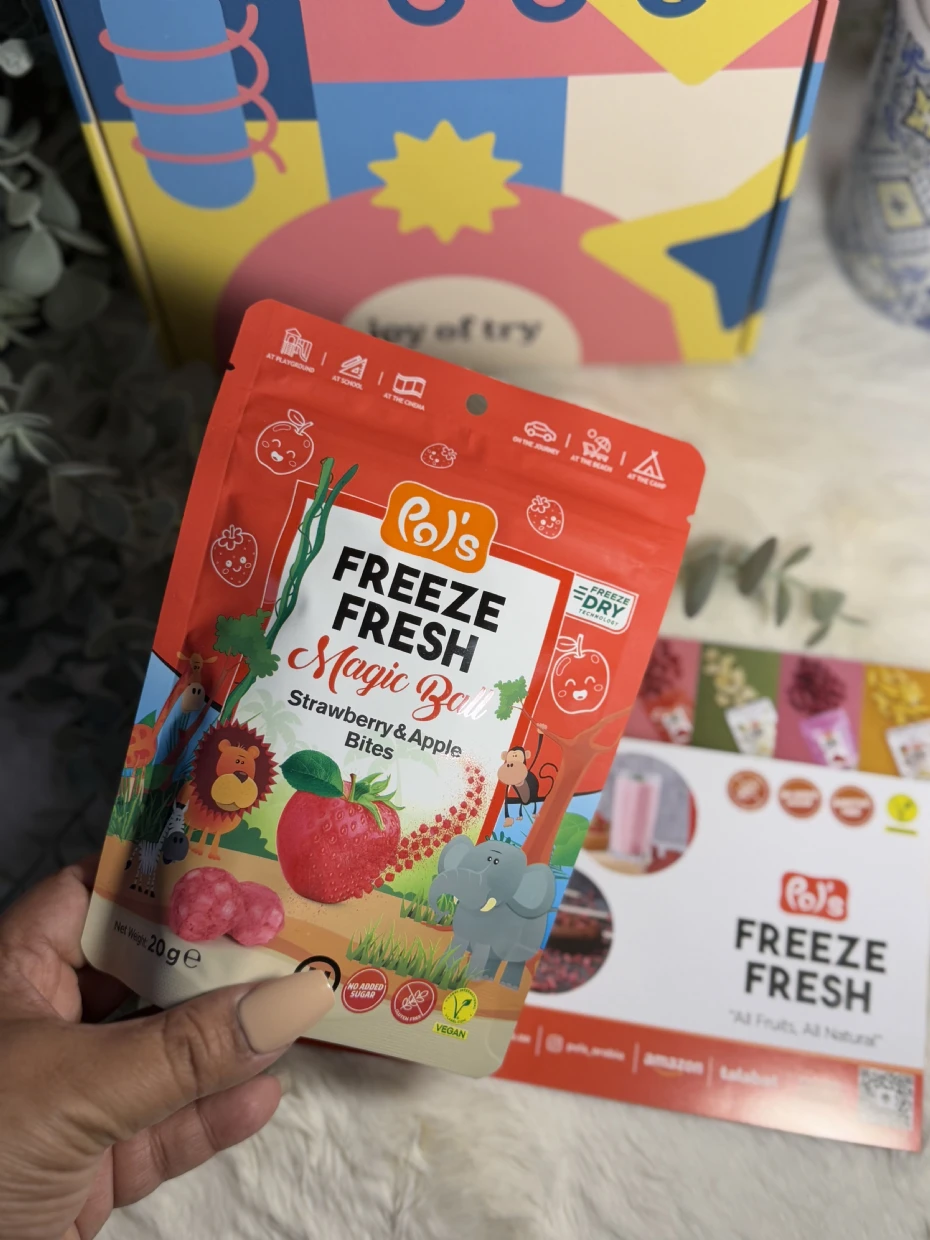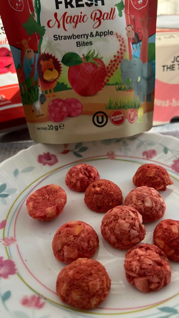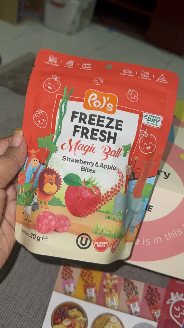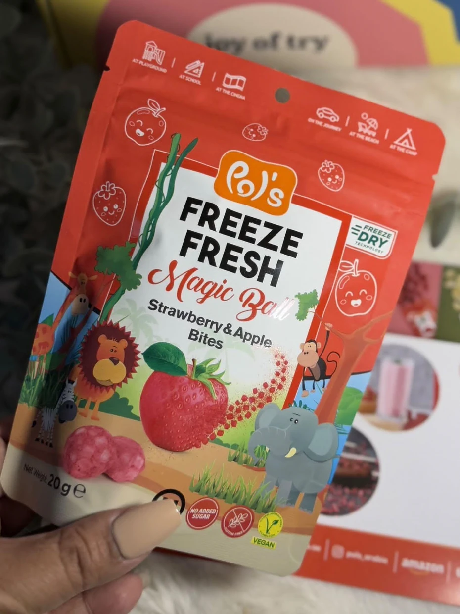 Tried these Pols Freeze Fresh Magic Ball Freeze-Dried Strawberry & Apple Bites, and they were an instant hit—especially with my little one! 💕 Ruhan absolutely loved the light, crispy texture and the burst of fruity flavors in every bite. It’s a perfect balance of sweet strawberries and refreshing apples, making snacking both fun and healthy.