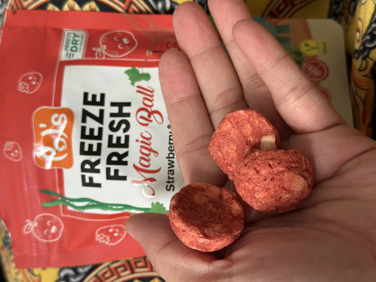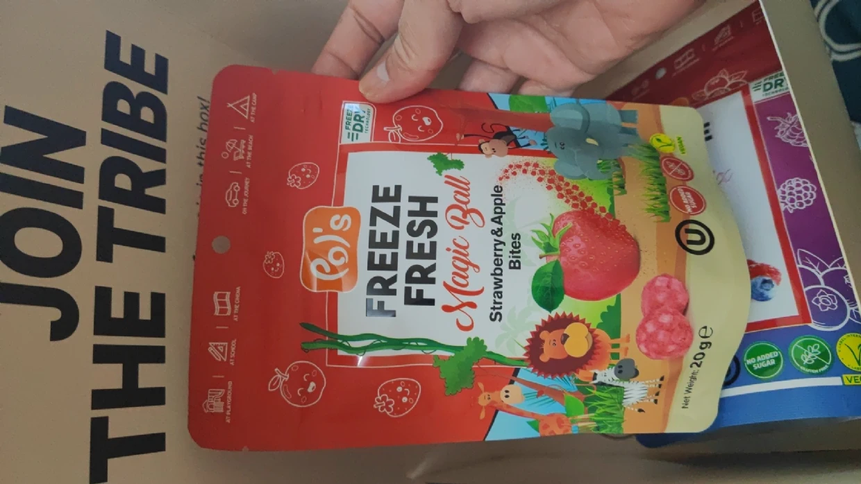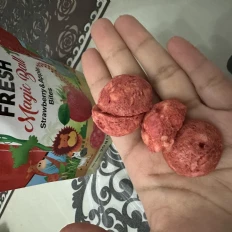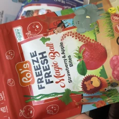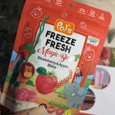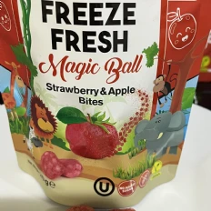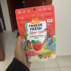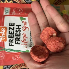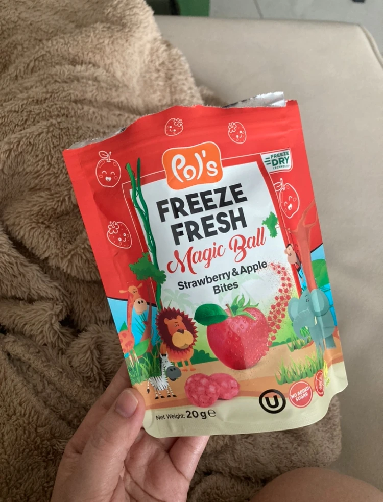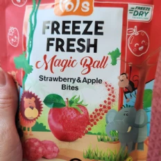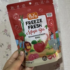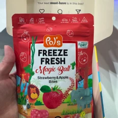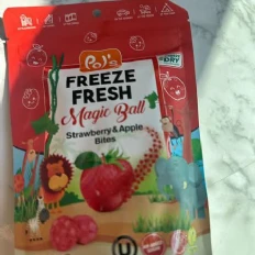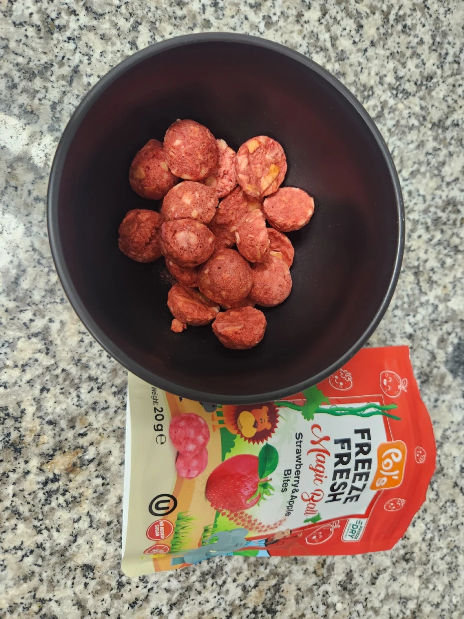 The Pols Freeze Fresh Magic Ball Freeze-Dried Strawberry & Apple Bites are light, crunchy, and packed with sweet, natural fruit flavors. The strawberry is sweet, and the apple is refreshing. They’re great for on-the-go snacking and have no added sugar or preservatives. The texture might take some getting used to, but overall, they’re a fun, healthy snack.