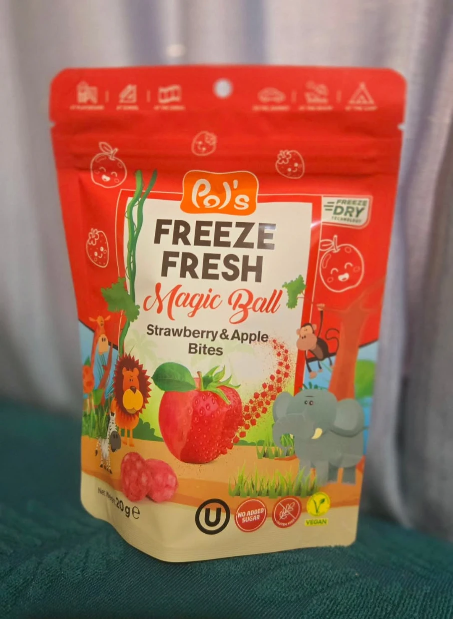 Pol’s Freeze Fresh Magic Ball Freeze-Dried Strawberry & Apple Bites are a perfect guilt-free treat! With no added sugar, they’re vegan, gluten-free, and Halal—ideal for my coeliac diet. I love adding them to smoothies, breakfast bowls, granola, and açaí bowls. Crunchy, naturally sweet, and absolutely delicious! Highly recommend!